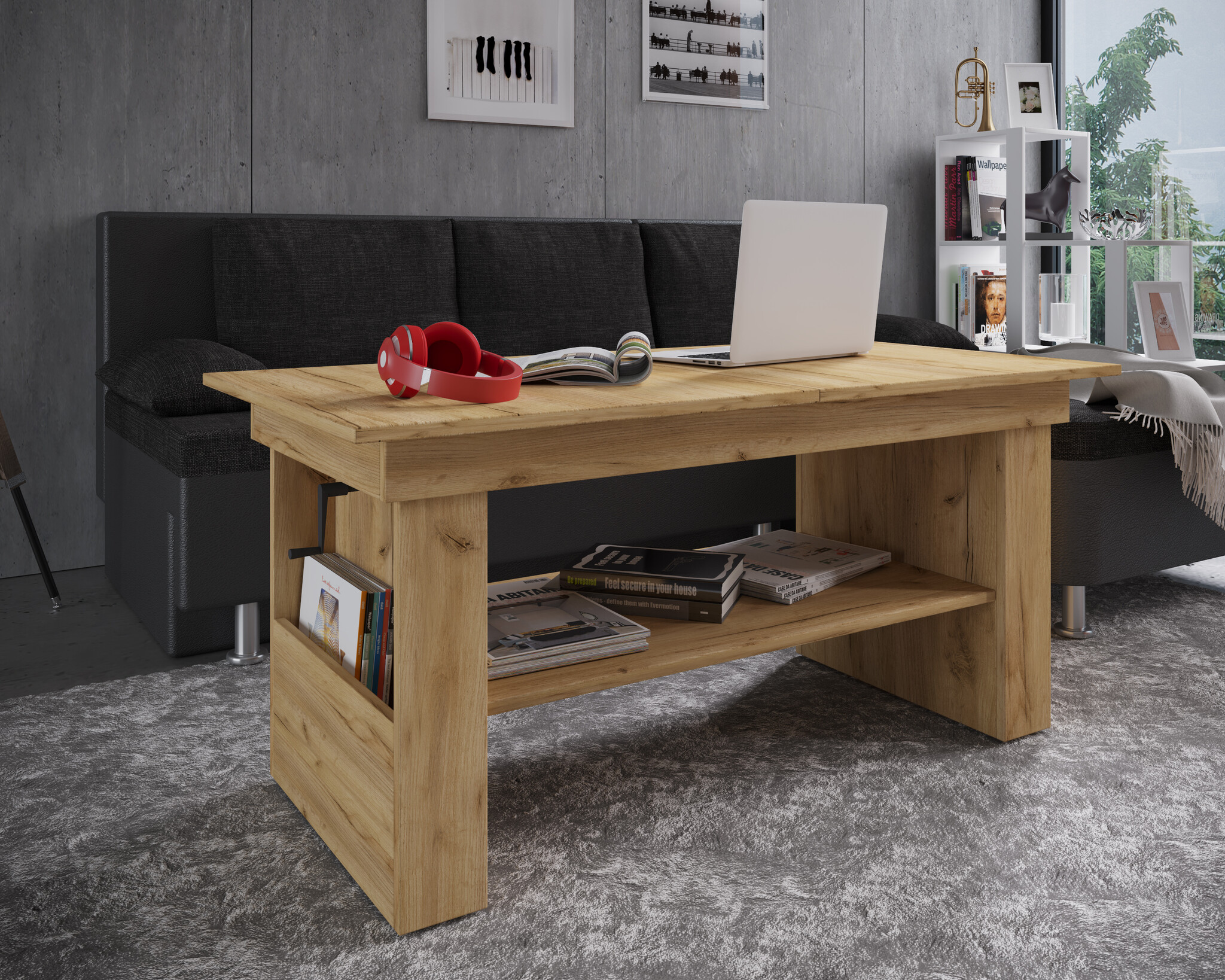 ebuy24 Kobila salontafel met in hoogte verstelbaar tafelblad, 1 legplank en 2 vakkenHoning eiken decor.