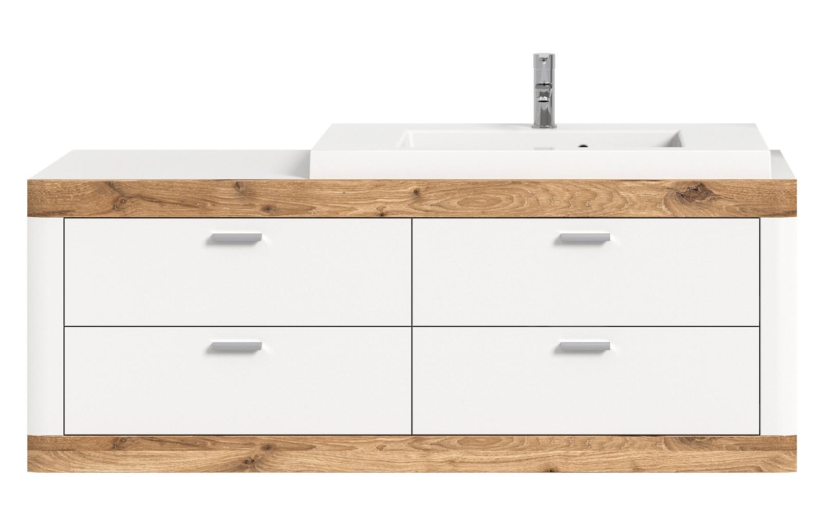 ebuy24 Laredo wastafel 132cm 4 laden mat wit,eik decor,wit.