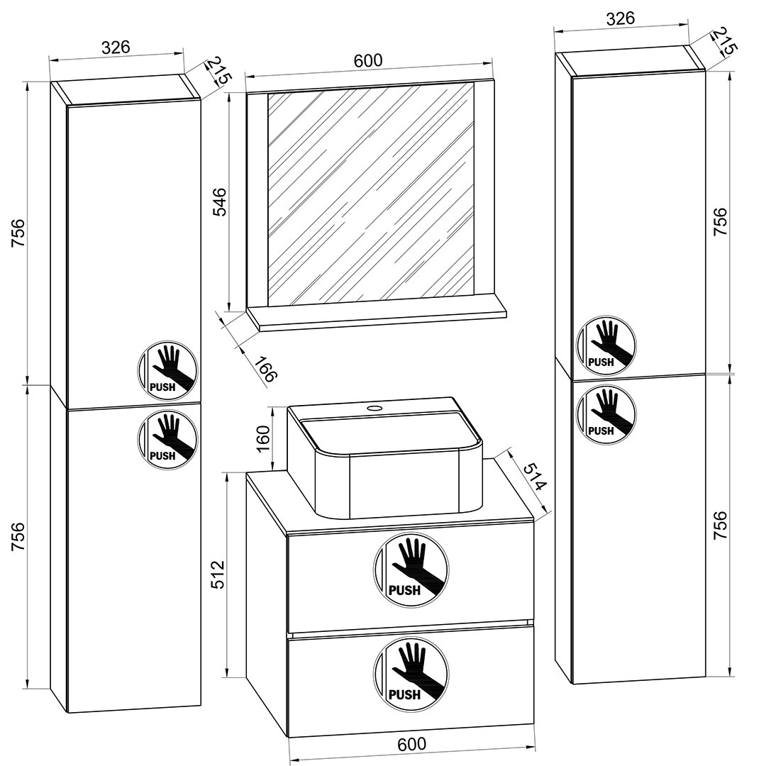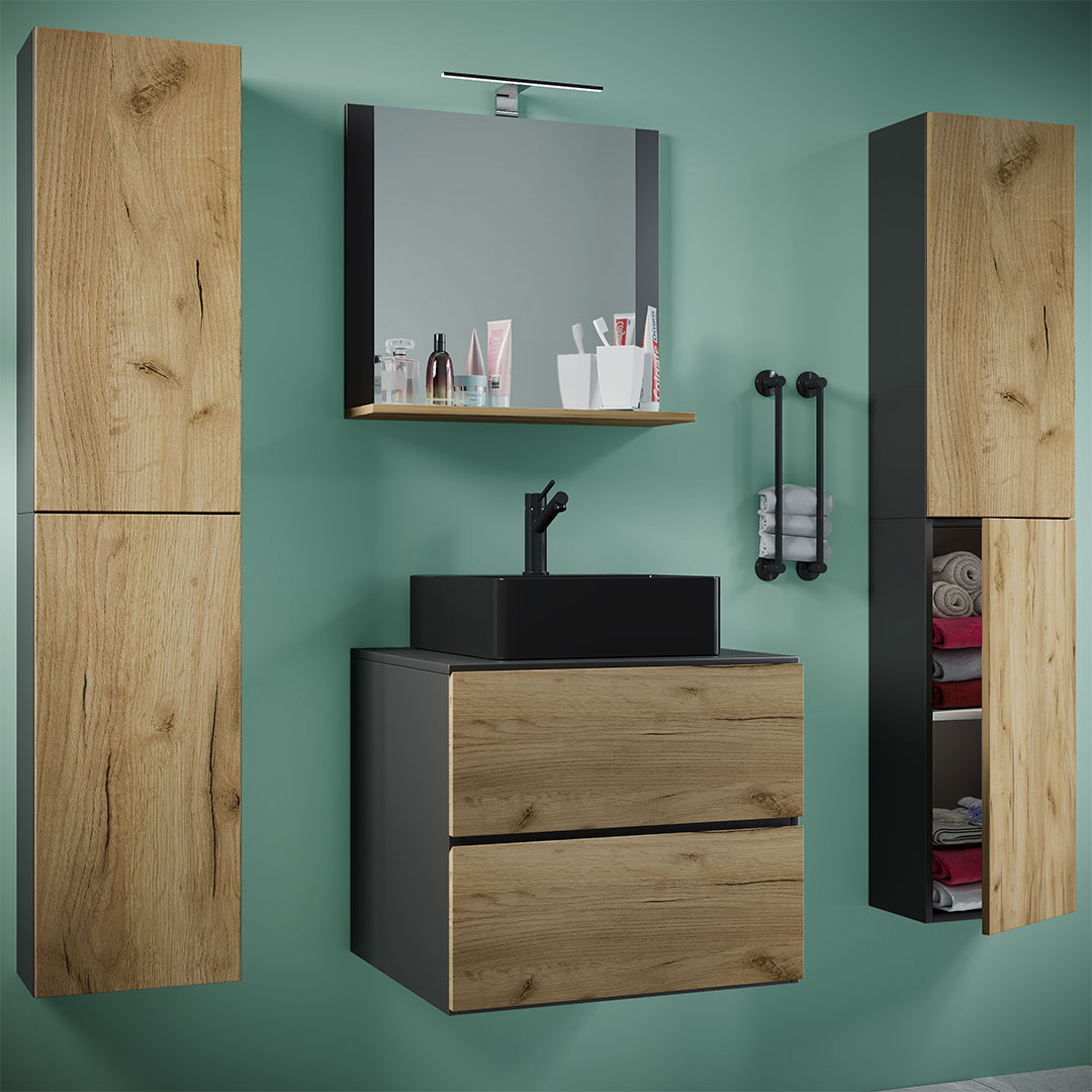 ebuy24 LendasXLBL badkamer 5 delen antraciet, eik decor.