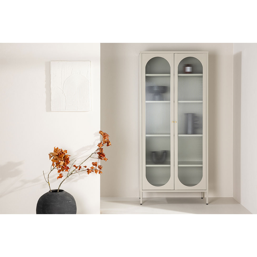 Lima vitrinekast 2 deuren beige is een vitrinekast in de kleur beige, die zowel stijl als functionaliteit in je huis brengt. Lima vitrinekast 2 deuren beige. Met de Lima beige stalen kast krijg je een praktisch en stijlvol meubelstuk dat perfect past in een modern interieur. Lima is een elegante beige kast gemaakt van staal, waardoor hij een stabiele en duurzame constructie heeft. Het moderne en minimalistische ontwerp zal een smaakvolle toevoeging aan uw huis zijn. De kast heeft vier royale planken die veel ruimte bieden voor organisatie. De twee deuren zijn gemaakt van gegolfd glas, wat een interessante visuele dimensie en textuur aan het meubilair toevoegt. Met de Lima stalen kast kunt u functionaliteit met stijl combineren en een gestroomlijnde en georganiseerde sfeer in uw huis creëren. Of het nu in de woonkamer, keuken of slaapkamer staat, Lima zal een praktisch en visueel aantrekkelijk meubelstuk in uw huis zijn. Dit product is gemaakt met oog voor detail, wat zowel esthetische aantrekkingskracht als hoge duurzaamheid garandeert. Het is ontworpen met zowel functionaliteit als stijl in gedachten, waardoor het de perfecte keuze is voor elke kamer in uw huis. De gebruikte materialen zijn van hoge kwaliteit, waardoor het product een lange levensduur heeft en bestand is tegen dagelijks gebruik. Of het nu voor opslag is of als decoratieve toevoeging, dit product zal uw interieur naar een hoger niveau tillen en extra comfort en elegantie in uw huis brengen.