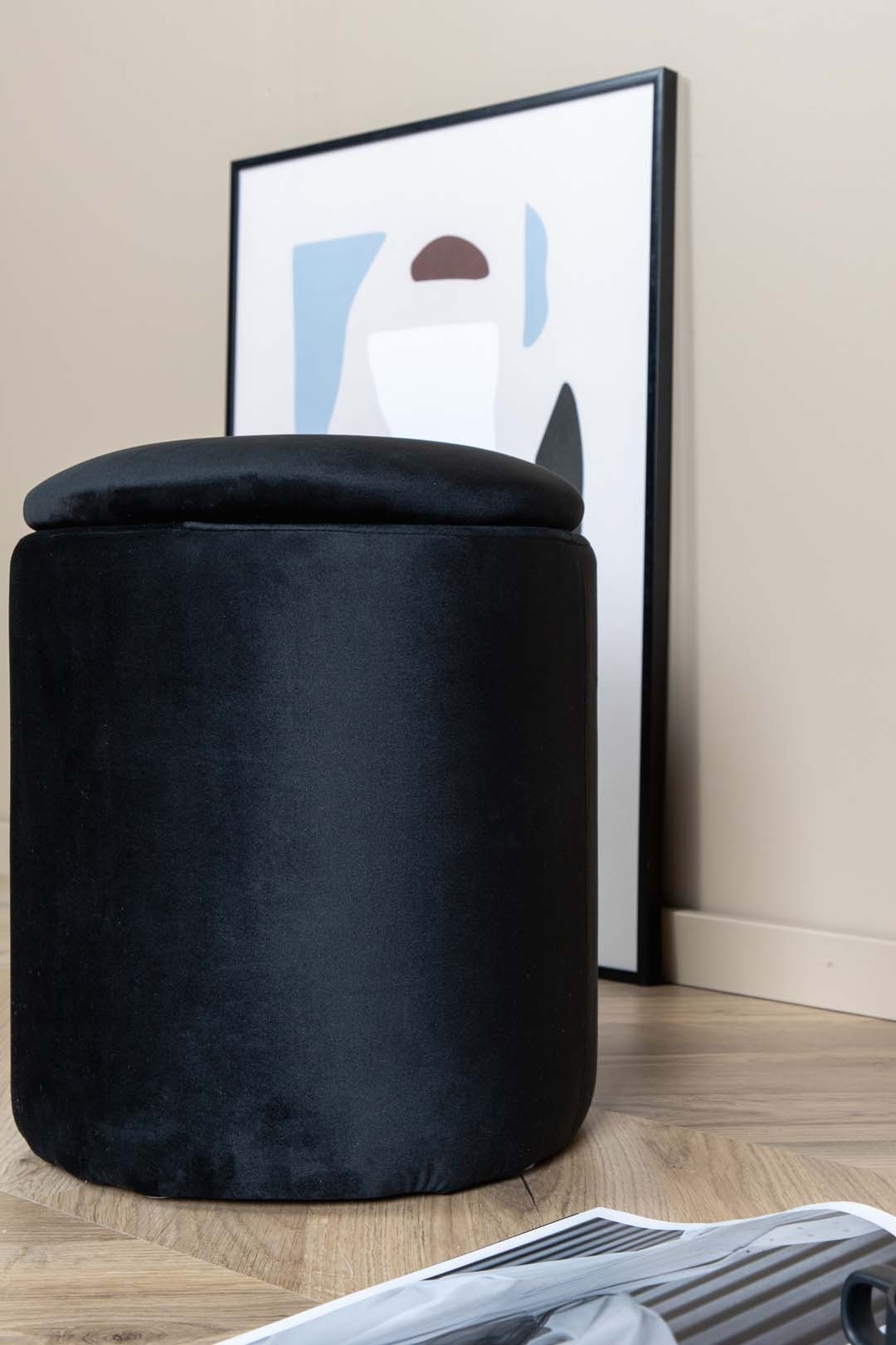 ebuy24 Limpen poef Ø32cm velours met opslag zwart.