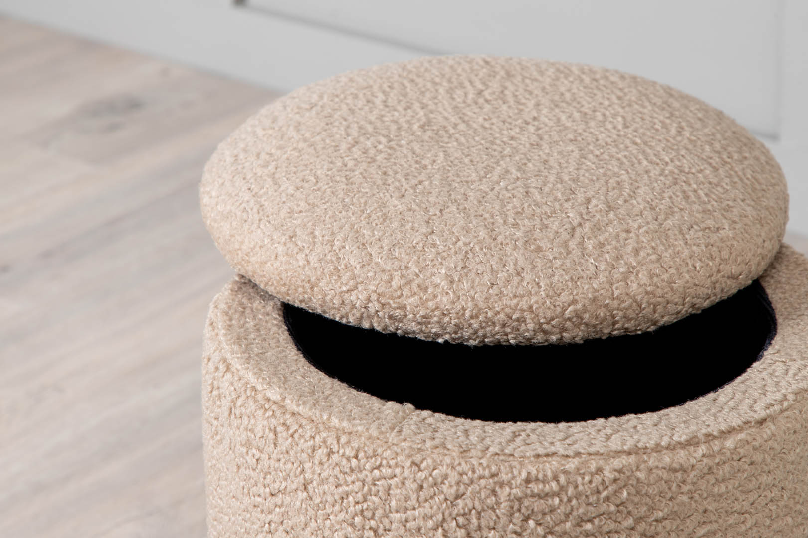 ebuy24 Limpen poef, hocker met opbergruimte Ø32cm teddystof beige.