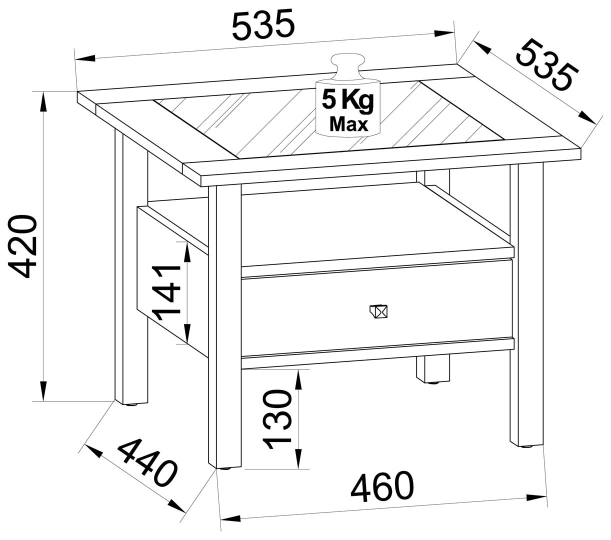 Productafmetingen: Breedte: 54 cm Diepte: 54 cm Hoogte: 42 cm