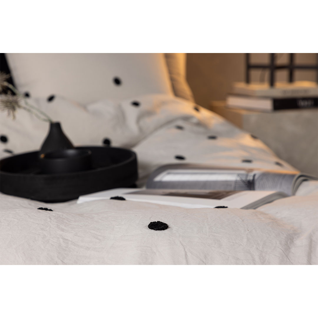 Loki bedset lichtgrijs is een textiel in lichtgrijze kleur dat zowel stijl als functionaliteit in uw huis brengt. Loki bedset lichtgrijs. Deze beddengoedset uit de Loki-serie is net zo gezellig om in weg te kruipen als comfortabel om op te slapen! Het beddengoed is gemaakt van het duurzame en comfortabele materiaal microvezel, dat gewassen kan worden en na verloop van tijd goed blijft zitten. Het beddengoed is lichtgrijs met zwarte getufte stippen die een levendige blikvanger vormen in trendy kleuren. Gezellig, mooi en comfortabel - wat wil je nog meer? Dit product is gemaakt met oog voor detail, wat zowel esthetische aantrekkingskracht als hoge duurzaamheid garandeert. Het is ontworpen met zowel functionaliteit als stijl in gedachten, waardoor het de perfecte keuze is voor elke kamer in uw huis. De gebruikte materialen zijn van hoge kwaliteit, waardoor het product een lange levensduur heeft en bestand is tegen dagelijks gebruik. Of het nu voor opslag is of als decoratieve toevoeging, dit product zal uw interieur naar een hoger niveau tillen en extra comfort en elegantie in uw huis brengen. Dit product is gemaakt met oog voor detail, wat zowel esthetische aantrekkingskracht als hoge duurzaamheid garandeert.