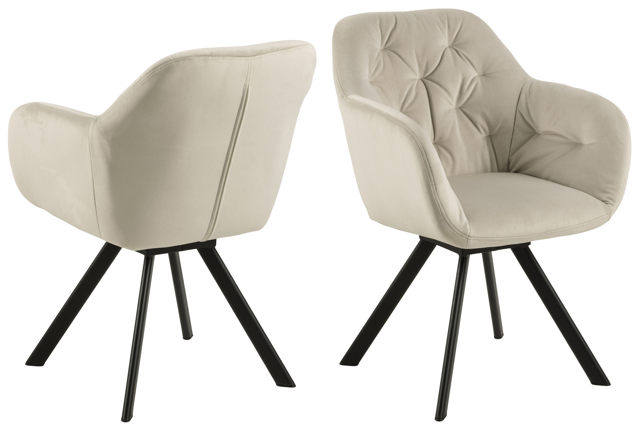Lola eetkamerstoel met armsteunen en rugleuning, velours bruin/zand