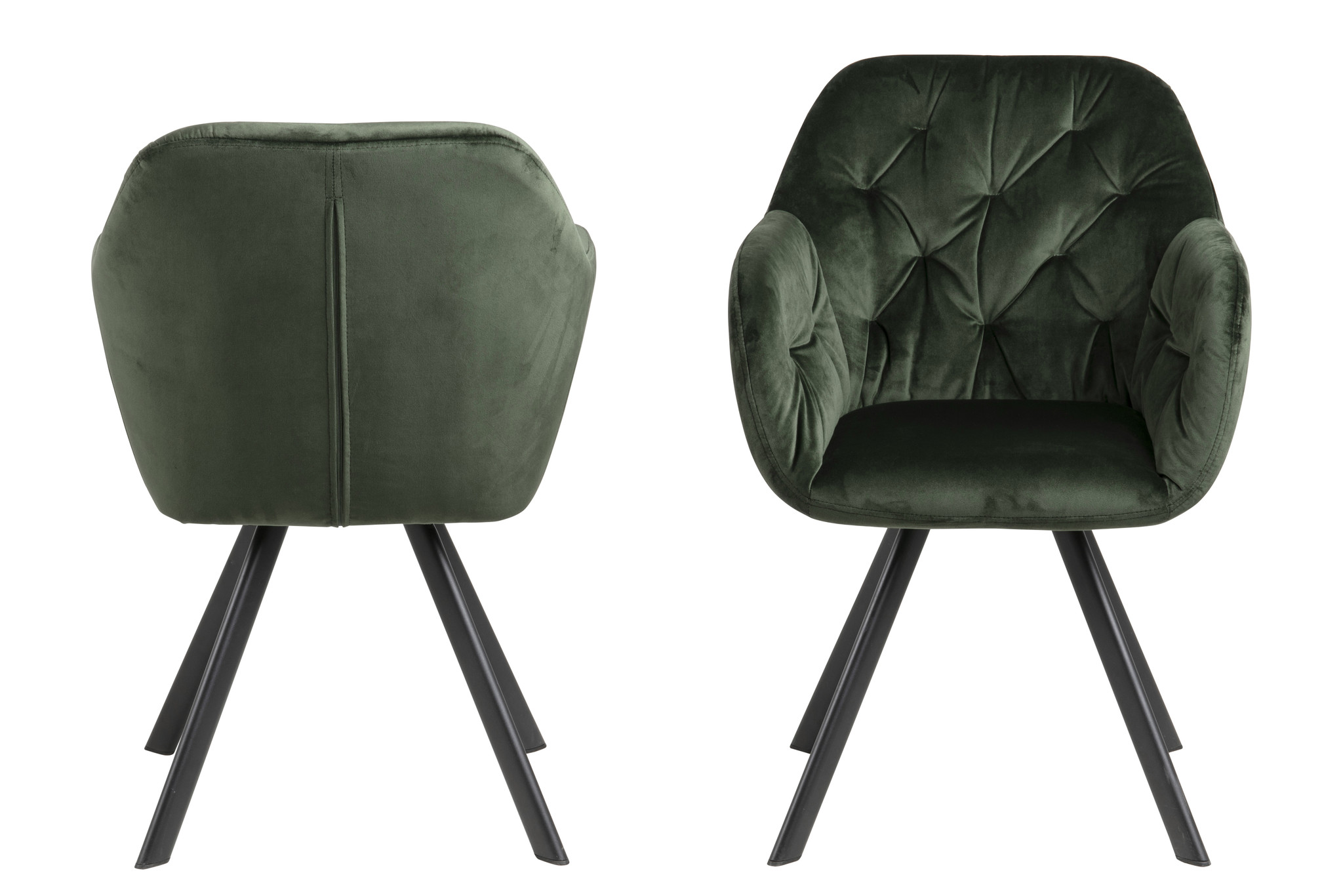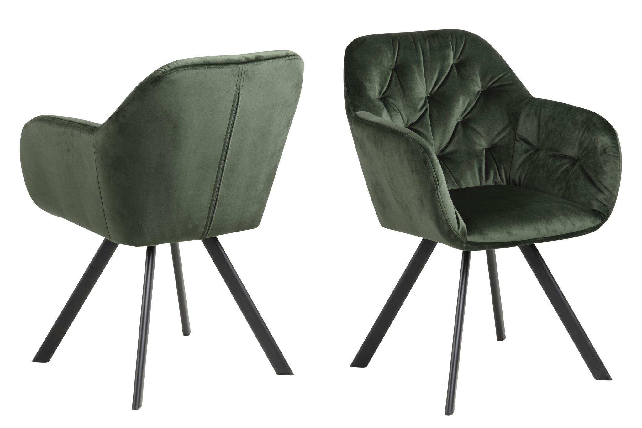 Loma eetkamerstoel met armleuningen en retour groen. VIC (Velour): 100% polyester, 295g/m2, Martindale >25.000, pilling note 4, colour fastness to light 5. "Pilling", Opvulling van de stof, gaat van 0-5, waar 5 het beste is. "Colour fastness to light", Kl ...Lees uitgebreide product informatie