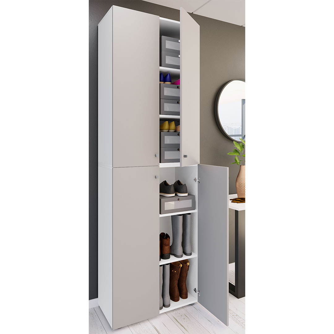 ebuy24 Lona2XLDT schoenenkast 4 deuren wit, grijs.