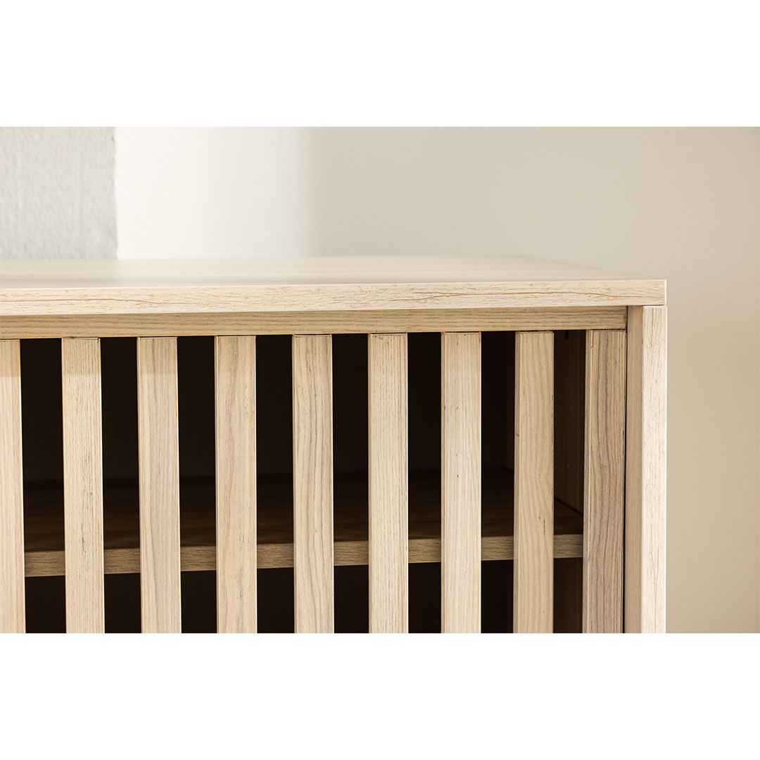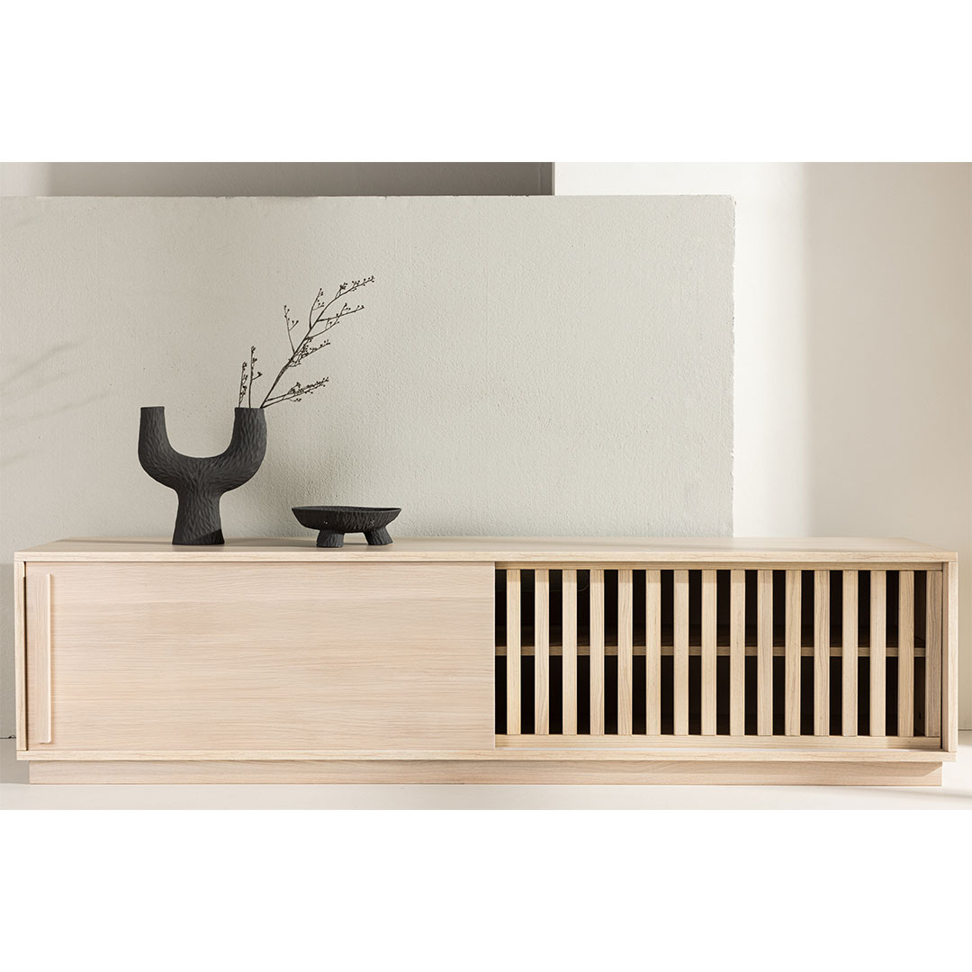 Lugo TV-meubel 2 deuren whitewash is een TV-meubel in de kleur Whitewash, dat zowel stijl als functionaliteit in uw huis brengt. Lugo TV-meubel 2 deuren whitewash. Laten we Lugo voorstellen - je nieuwe favoriete tv-tafel met een witgekalkte afwerking en Scandinavische stijl! Met zijn verfijnde melamine-oppervlak in de frisse whitewash-kleur zorgt dit tv-tafeltje meteen voor een gastvrije sfeer in je woonkamer! Belangrijk hierbij is echter dat Lugo niet alleen een lust voor het oog is; zijn praktische design is ook een meesterwerk . De slimme schuifdeur, waarachter een ruime plank schuilgaat, biedt uitzonderlijke opbergruimte voor al je tv-accessoires. De ene deur is massief, terwijl de andere is versierd met een elegant geribbeld rooster dat een modern vleugje Scandinavische stijl toevoegt. Versier de tv-tafel met je favoriete speakers en prachtige kandelaars om de perfecte gezelligheid in huis te creëren. Nu kunt u een ruimte creëren waar schoonheid en functionaliteit hand in hand gaan en waar u van elk moment kunt genieten in een huiselijke omgeving die even praktisch als elegant is! Dit product is gemaakt met oog voor detail, wat zowel esthetische aantrekkingskracht als hoge duurzaamheid garandeert. Het is ontworpen met zowel functionaliteit als stijl in gedachten, waardoor het de perfecte keuze is voor elke kamer in uw huis. De gebruikte materialen zijn van hoge kwaliteit, waardoor het product een lange levensduur heeft en bestand is tegen dagelijks gebruik. Of het nu voor opslag is of als decoratieve toevoeging, dit product zal uw interieur naar een hoger niveau tillen en extra comfort en elegantie in uw huis brengen.