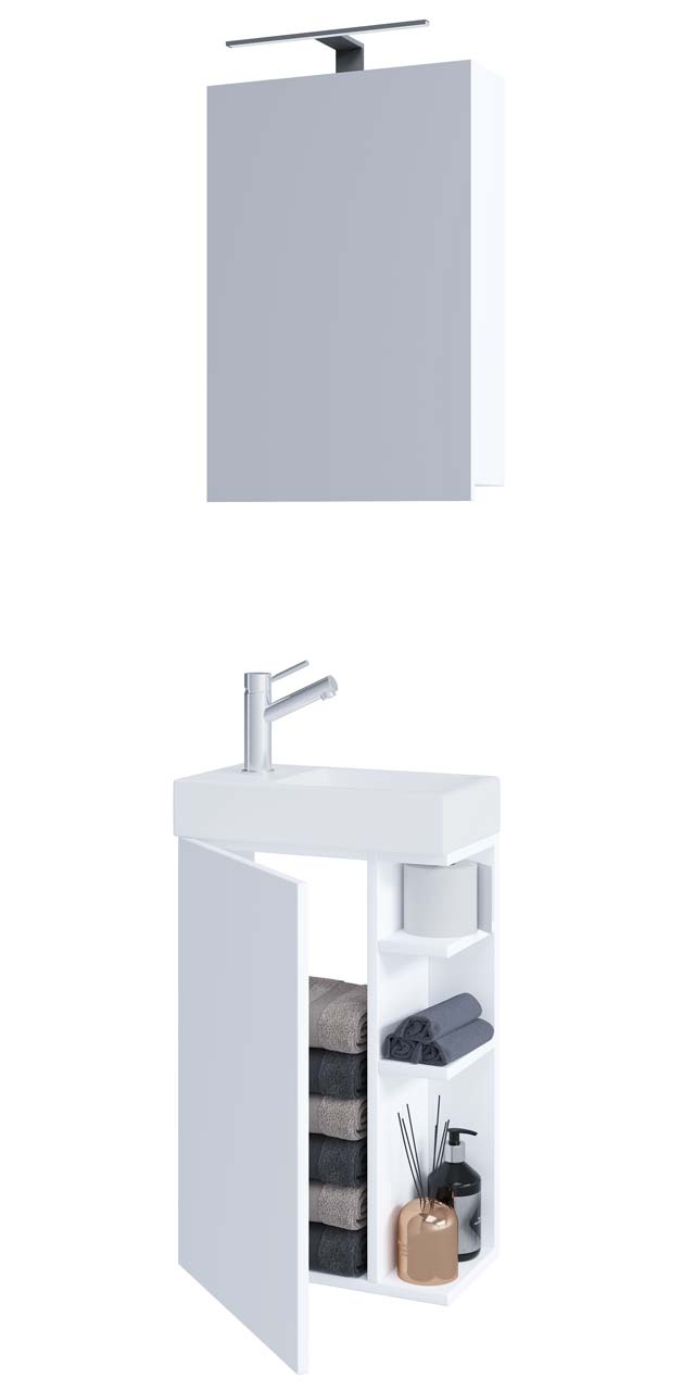 LumiaSS badkamer wit. 2 delen. Incl. wasbak. Zonder kraan. Wastafel: H 70 x B 40 x T 22 cm. Zonder licht. Spiegelkast: H 59 x B 40 x T 12 cm. Je ontvangt meubels van een goede kwaliteit met een aangenaam comfort, gemaakt in een stijlvol en mooi design. Onze meubels zijn zeer aantrekkelijk geprijsd. Creëer uw eigen persoonlijke stijl met een nieuw meubel. Combineer met kleinmeubels of een paar mooie woonaccessoires. Hier verkrijg je de nieuwe woningtrends, zoals je ze in tijdschriften en magazines ziet. Bij ons vindt u unieke, praktische en comfortabele meubels met elk zijn eigen, mooi en apart design.