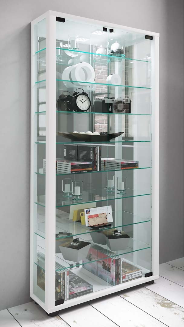 tom LumoMaxi vitrinekast met spiegel 2 glazen deuren Incl. LED-verlichting zilverkleurig.