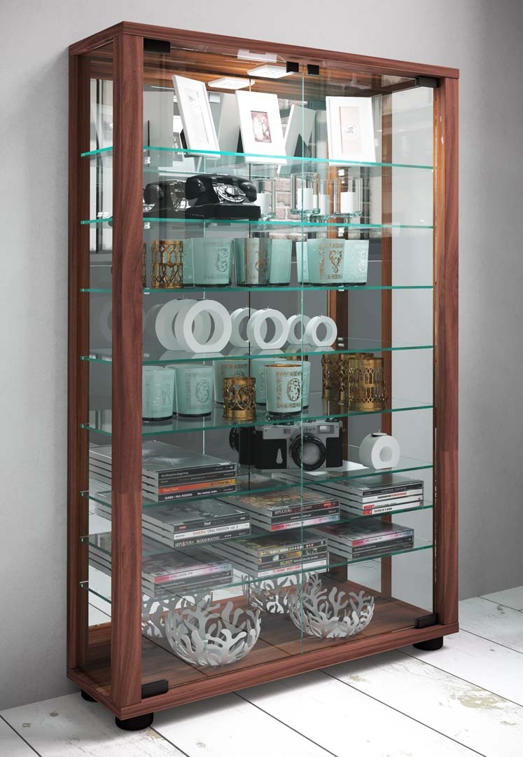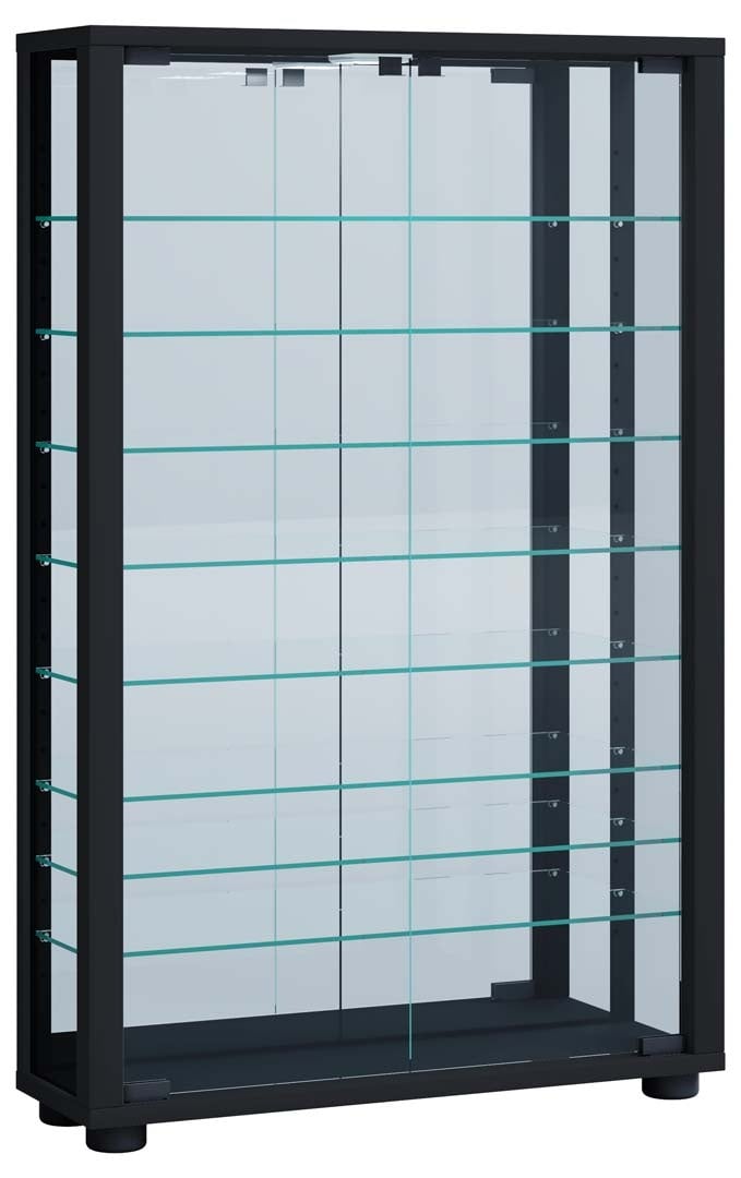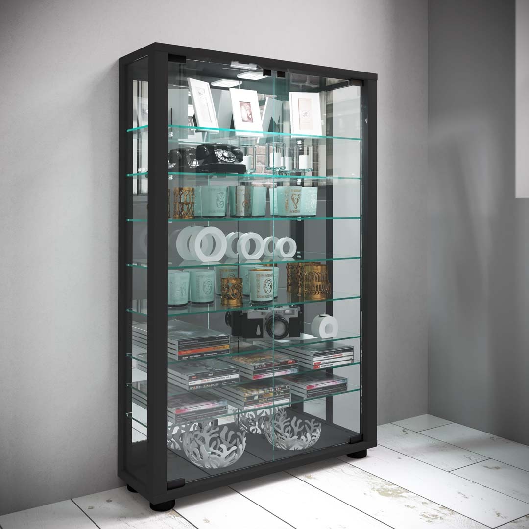 ebuy24 LumoMini vitrinekast met spiegel 2 glazen deuren zwart.