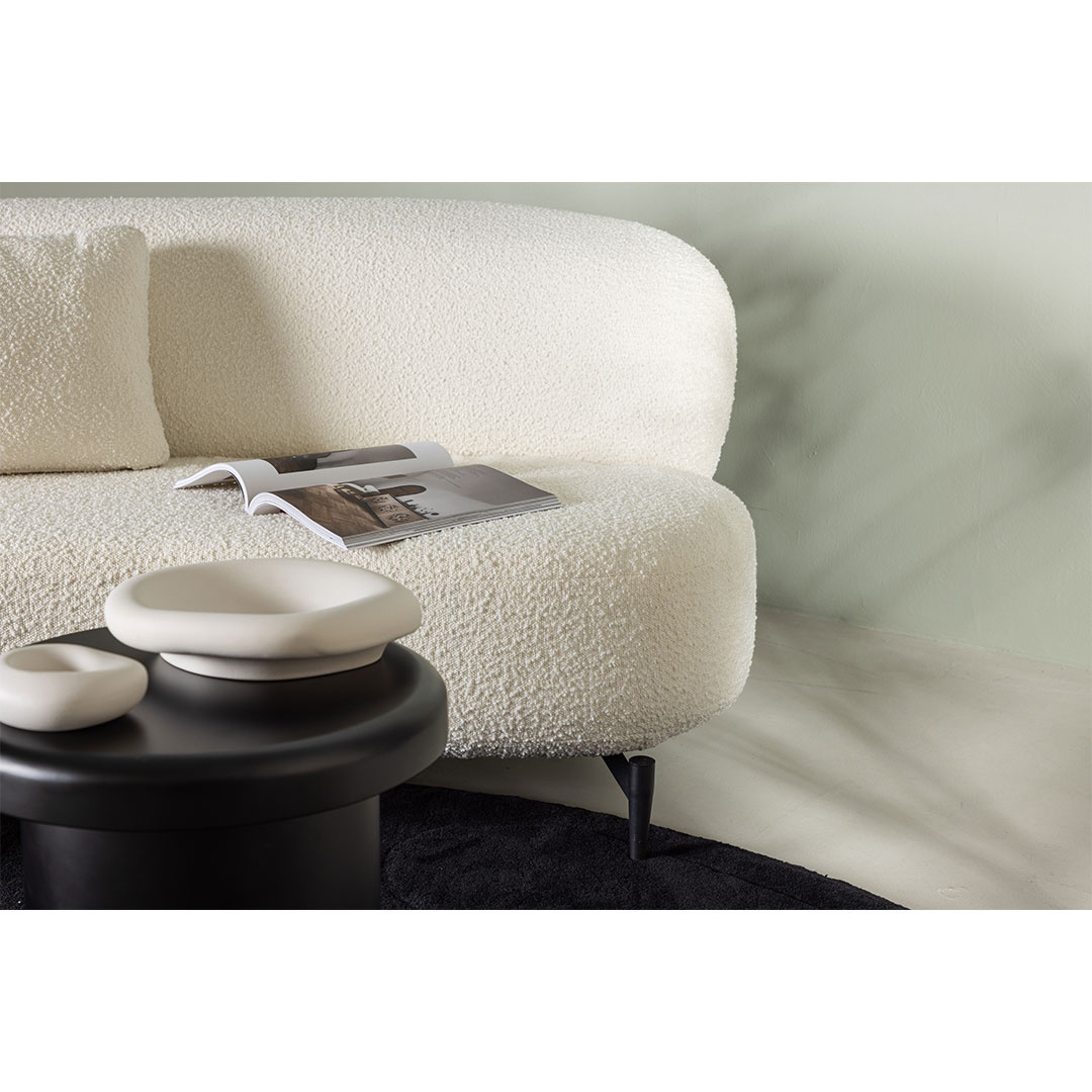 Luna bank 3 personen wit is een bank in de kleur wit die zowel stijl als functionaliteit in uw huis brengt. Luna bank 3 persoons wit. Creëer een eyecatcher die indruk maakt met behulp van een moderne, witte bank in smaakvol Scandinavisch design! Deze 2-3 persoonsbank uit de serie Luna heeft een trendy design met een licht gebogen rugleuning die vloeiend aansluit op het ovale zitvlak. De witte boucléstof is helemaal volgens de trends en makkelijk schoon te houden met onze onderhoudsinstructies. De bank staat op slanke, zwart metalen poten die een luchtige indruk geven en het makkelijker maken voor de stofzuiger. Het moet luxueus aanvoelen om thuis te komen en na een lange dag ontspannen op de bank neer te ploffen. Plaats hem naast andere banken of als solitair en zet met de bank de toon in de woonkamer! Dit product is gemaakt met oog voor detail, wat zowel esthetische aantrekkingskracht als hoge duurzaamheid garandeert. Het is ontworpen met zowel functionaliteit als stijl in gedachten, waardoor het de perfecte keuze is voor elke kamer in uw huis. De gebruikte materialen zijn van hoge kwaliteit, waardoor het product een lange levensduur heeft en bestand is tegen dagelijks gebruik. Of het nu voor opslag is of als decoratieve toevoeging, dit product zal uw interieur naar een hoger niveau tillen en extra comfort en elegantie in uw huis brengen.