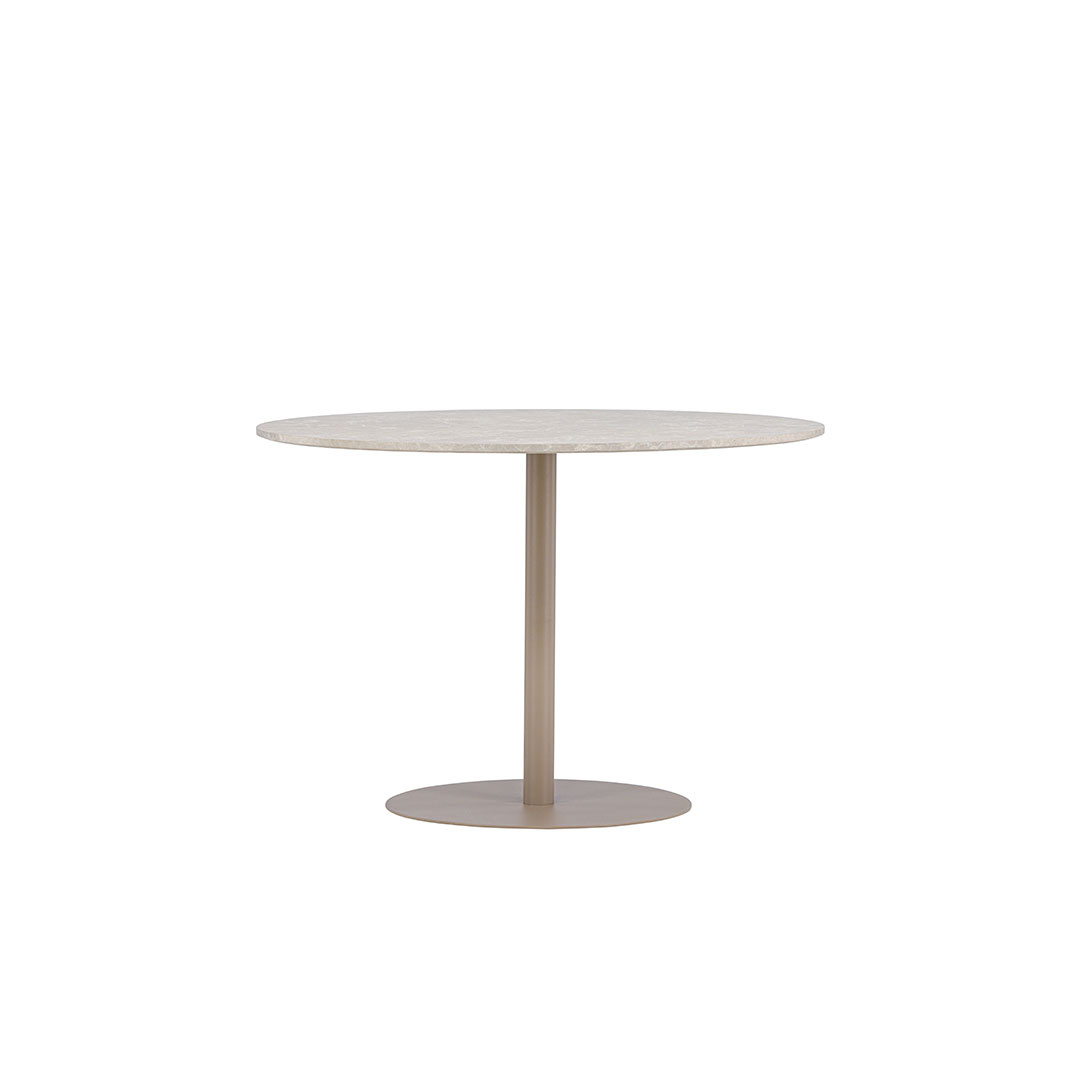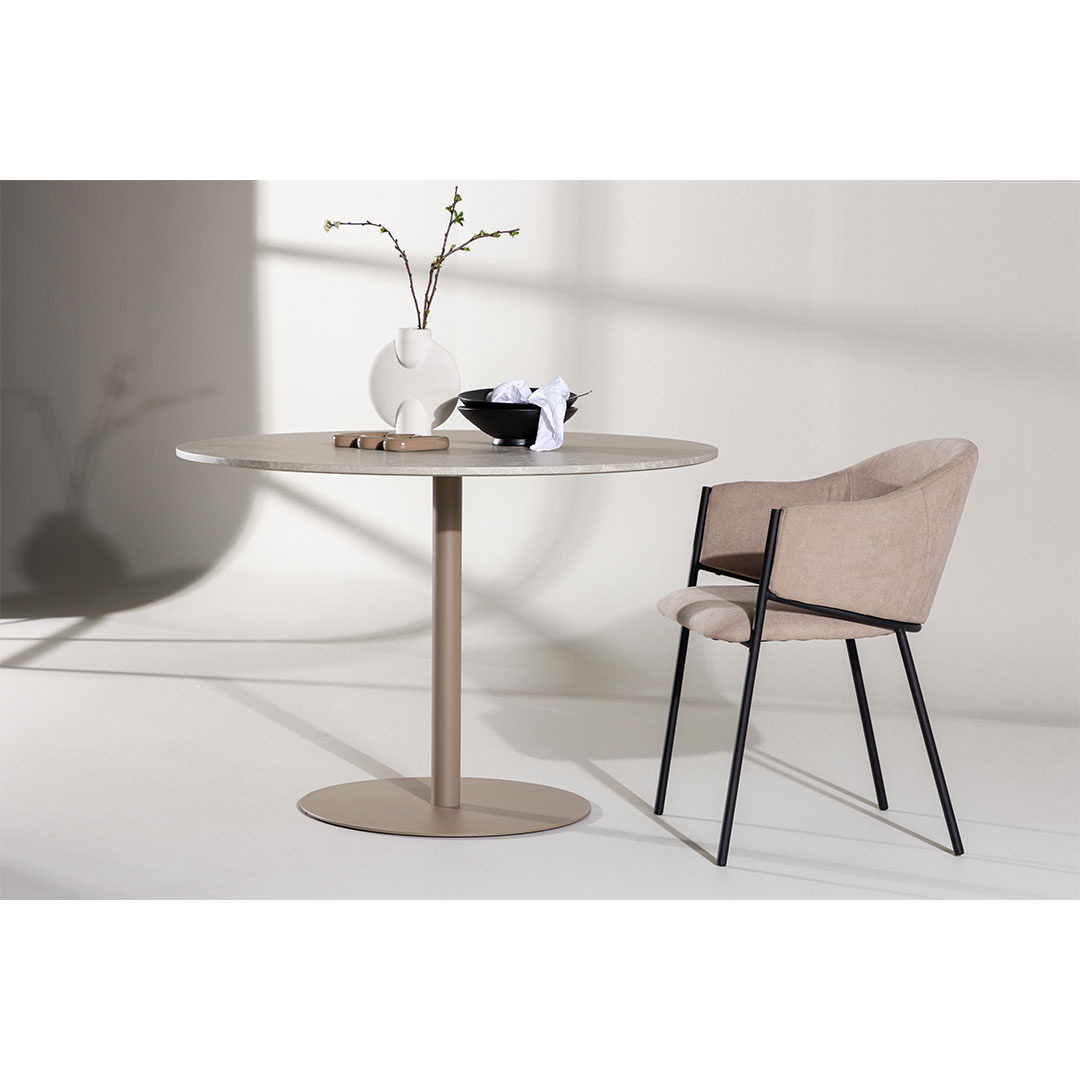 Lycke eettafel Ø110cm beige is een eettafel in beige kleur die zowel stijl als functionaliteit in huis brengt. Lycke eettafel Ø110cm beige. Ontdek de eettafel Lycke - een perfecte combinatie van stijl en functie. De eettafel Lycke is gemaakt van MDF-materiaal met een elegante marmerimitatie en geeft een modern tintje aan je eethoek. Met een diameter van 110 cm biedt Lycke voldoende ruimte voor diners en gezellige bijeenkomsten. Het moderne design en de trendy stijl maken Lycke tot het perfecte meubelstuk voor elk huis. Of het nu een avond met het gezin is of een feest met vrienden, de Lycke eettafel zal het middelpunt zijn van bijeenkomsten en aangename momenten. Laat de Lycke eettafel het middelpunt van uw maaltijden zijn en creëer herinneringen met stijl en elegantie. Met zijn trendy design en royale oppervlak is de Lycke eettafel de ultieme keuze voor een moderne woninginrichting. Dit product is gemaakt met oog voor detail, wat zowel esthetische aantrekkingskracht als hoge duurzaamheid garandeert. Het is ontworpen met zowel functionaliteit als stijl in gedachten, waardoor het de perfecte keuze is voor elke kamer in uw huis. De gebruikte materialen zijn van hoge kwaliteit, waardoor het product een lange levensduur heeft en bestand is tegen dagelijks gebruik. Of het nu voor opslag is of als decoratieve toevoeging, dit product zal uw interieur naar een hoger niveau tillen en extra comfort en elegantie in uw huis brengen.