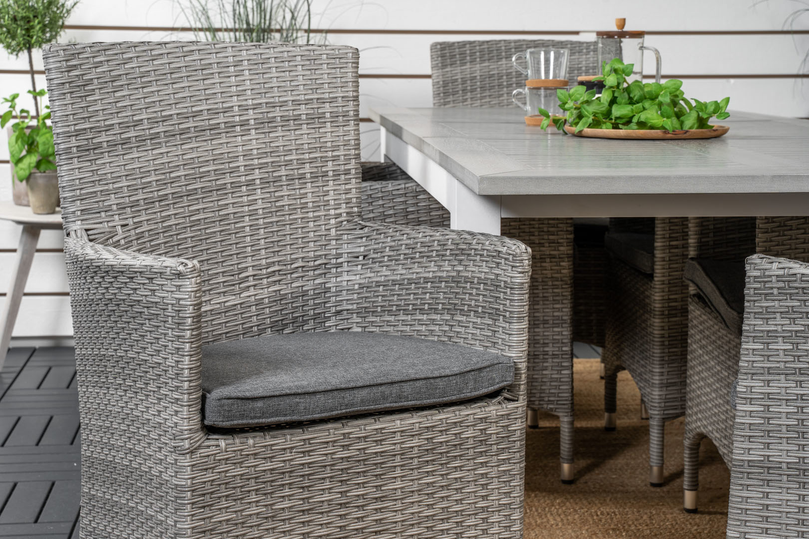 Malin tuinstoel met armleuningen incl. kussen, stapelbaar grijs.