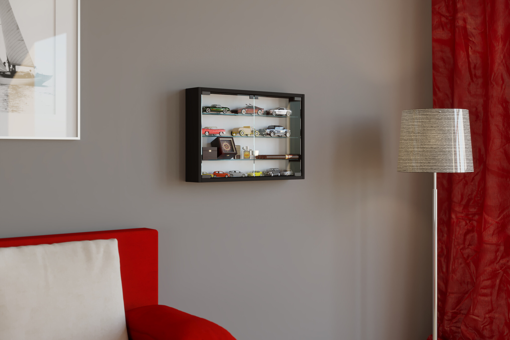 ebuy24 Mandosa M vitrinekast 2 glazen deuren gemonteerd aan de muurzwart.