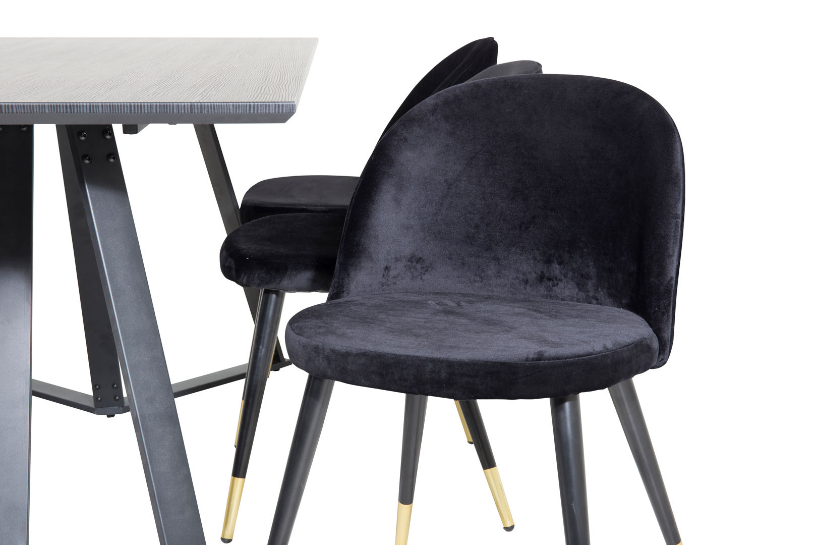 ebuy24 MarinaBLBL eethoek eetkamertafel zwart en 6 Velvet eetkamerstal velours zwart, messing decor.