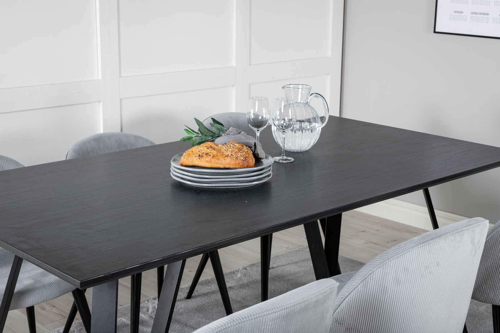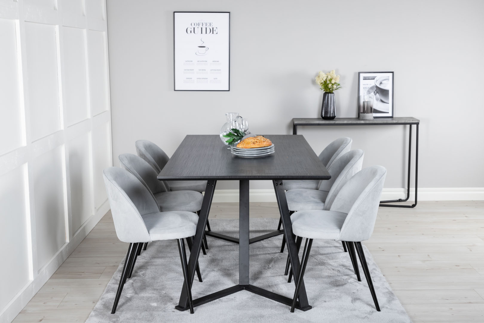 ebuy24 MarinaBLBL eethoek eetkamertafel zwart en 6 Velvet eetkamerstal fluweel lichtgrijs, zwart.