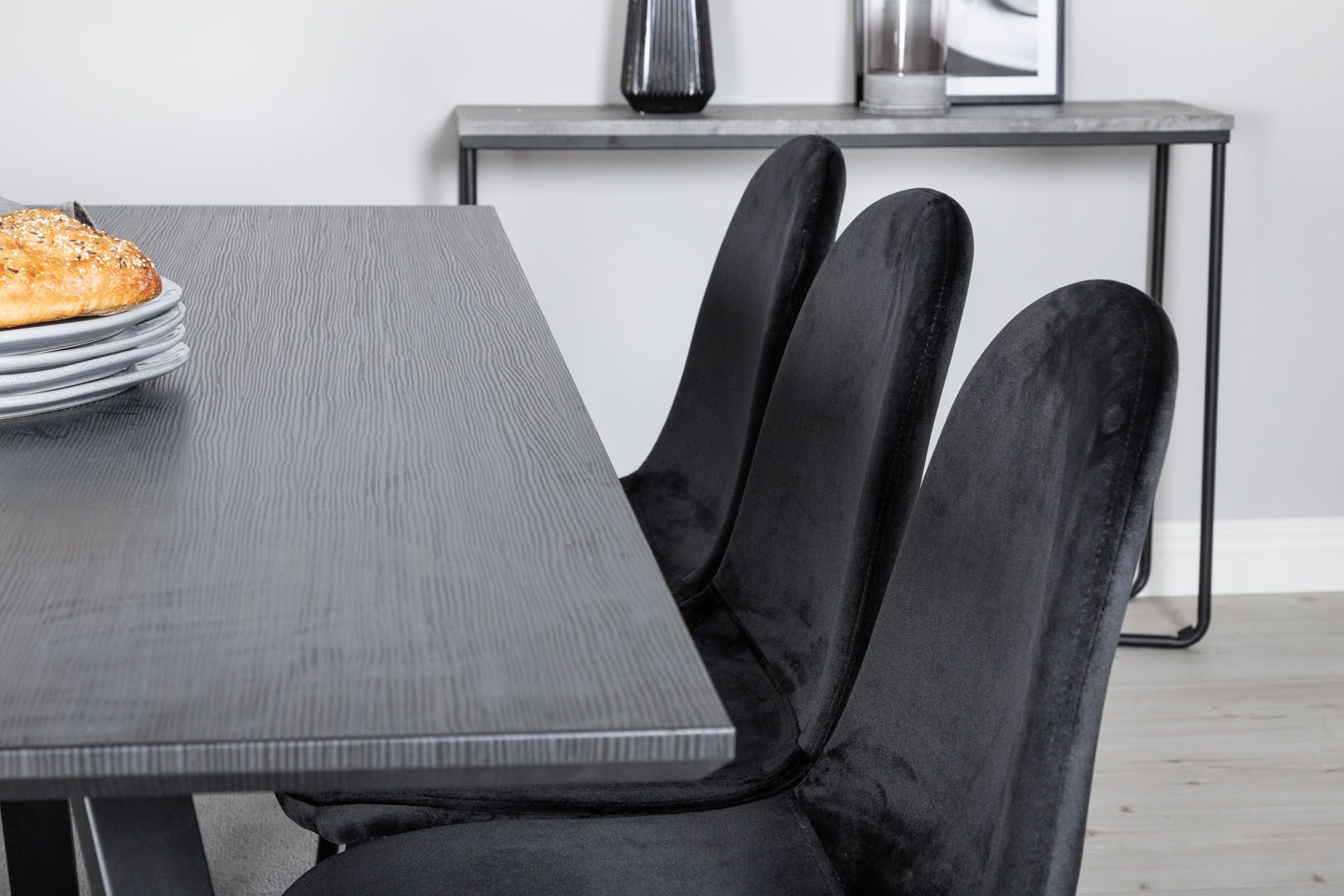 ebuy24 MarinaBLBL eethoek eetkamertafel zwart en 6 Polar eetkamerstal velours zwart.