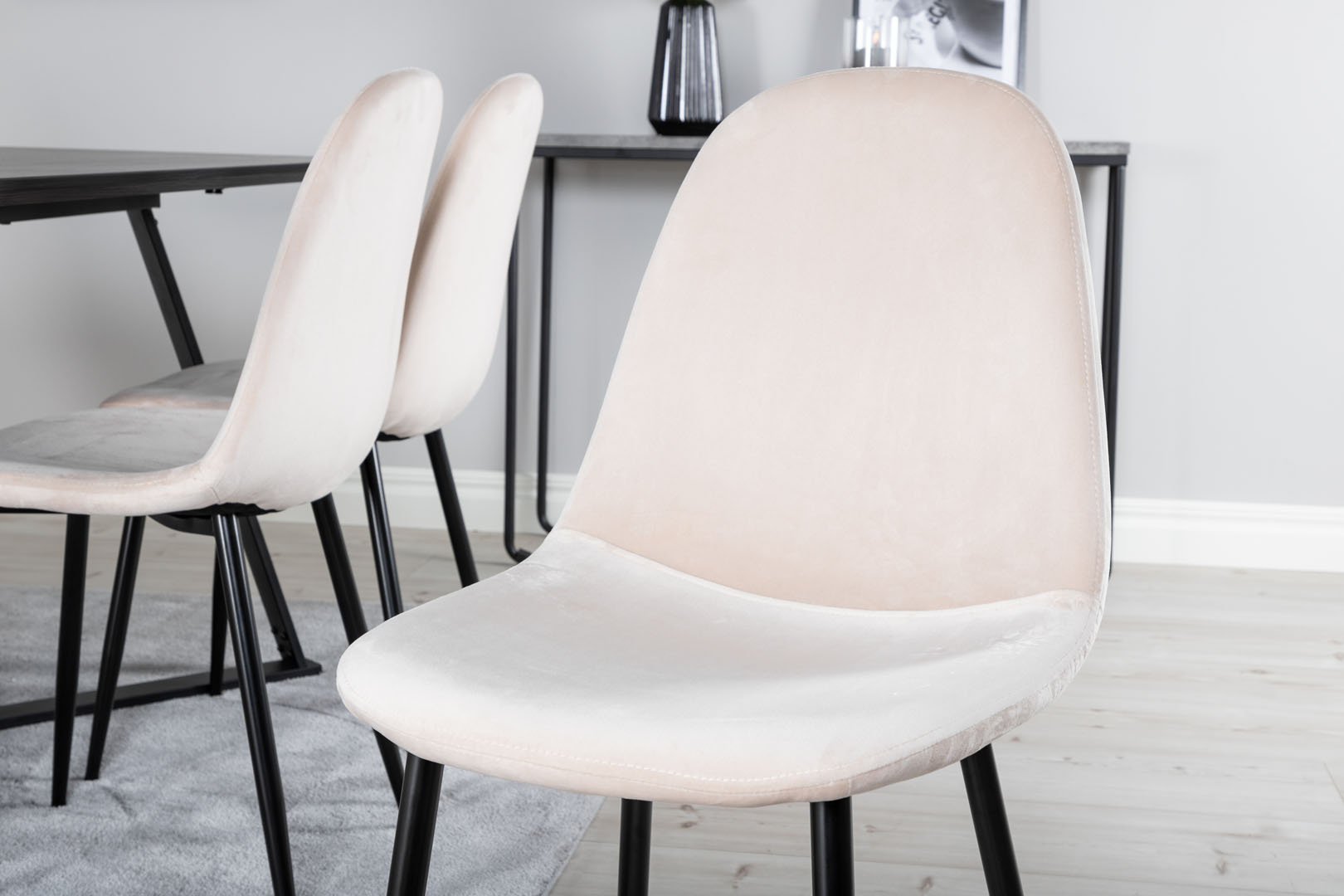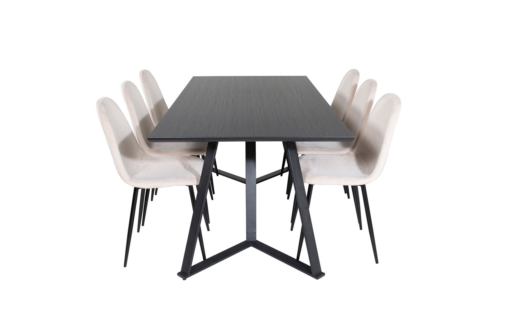 ebuy24 MarinaBLBL eethoek eetkamertafel zwart en 6 Polar eetkamerstal velours beige.