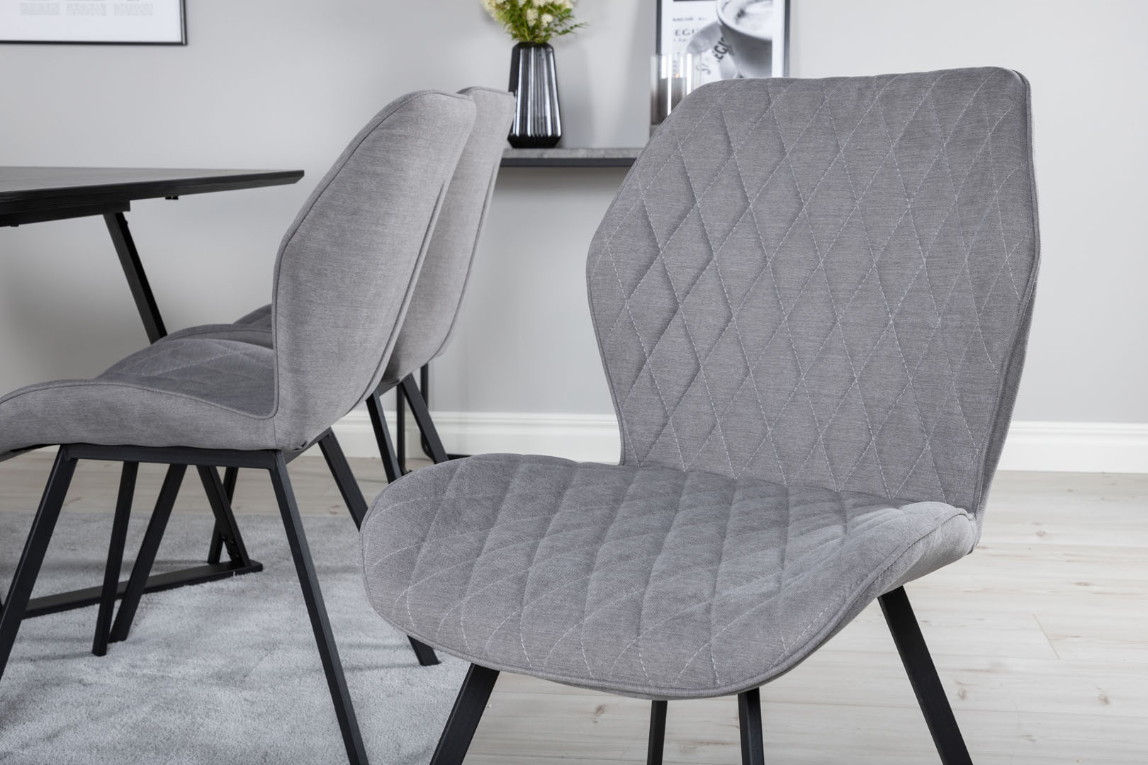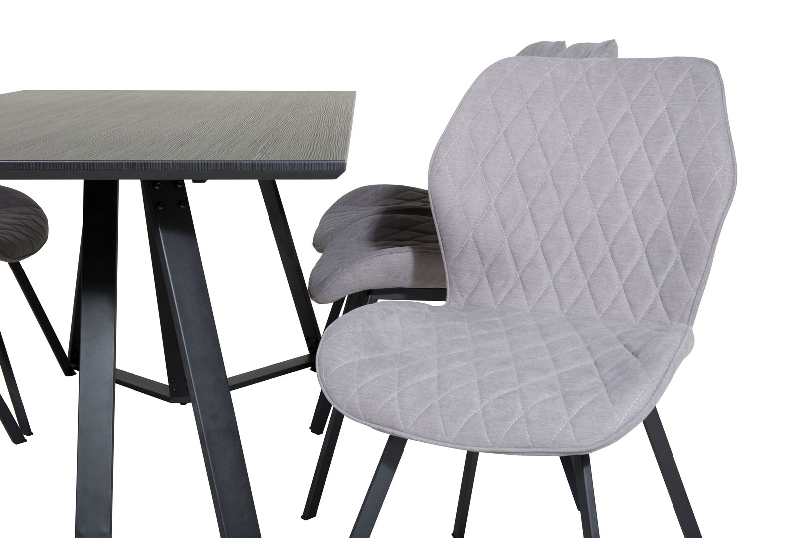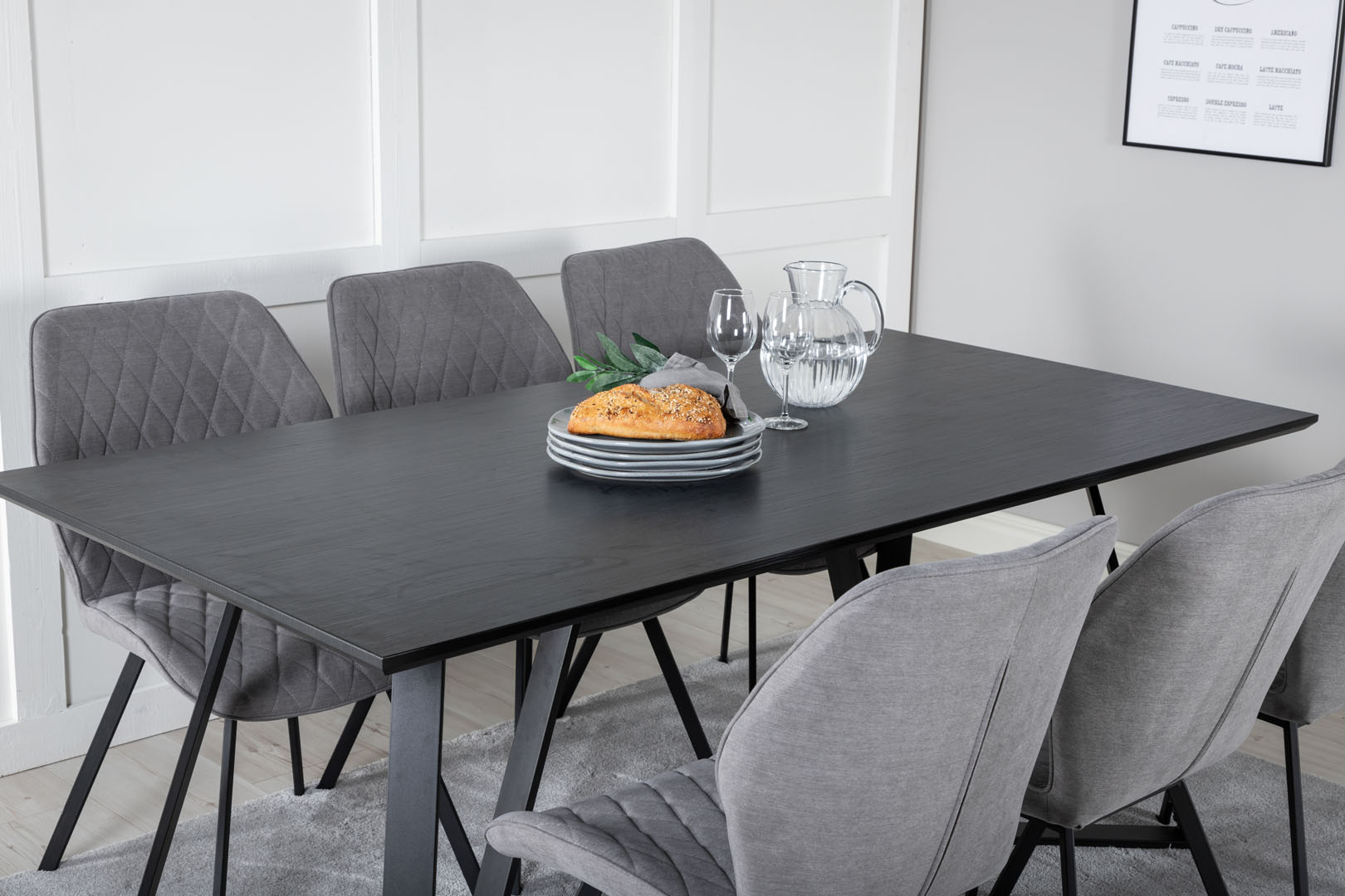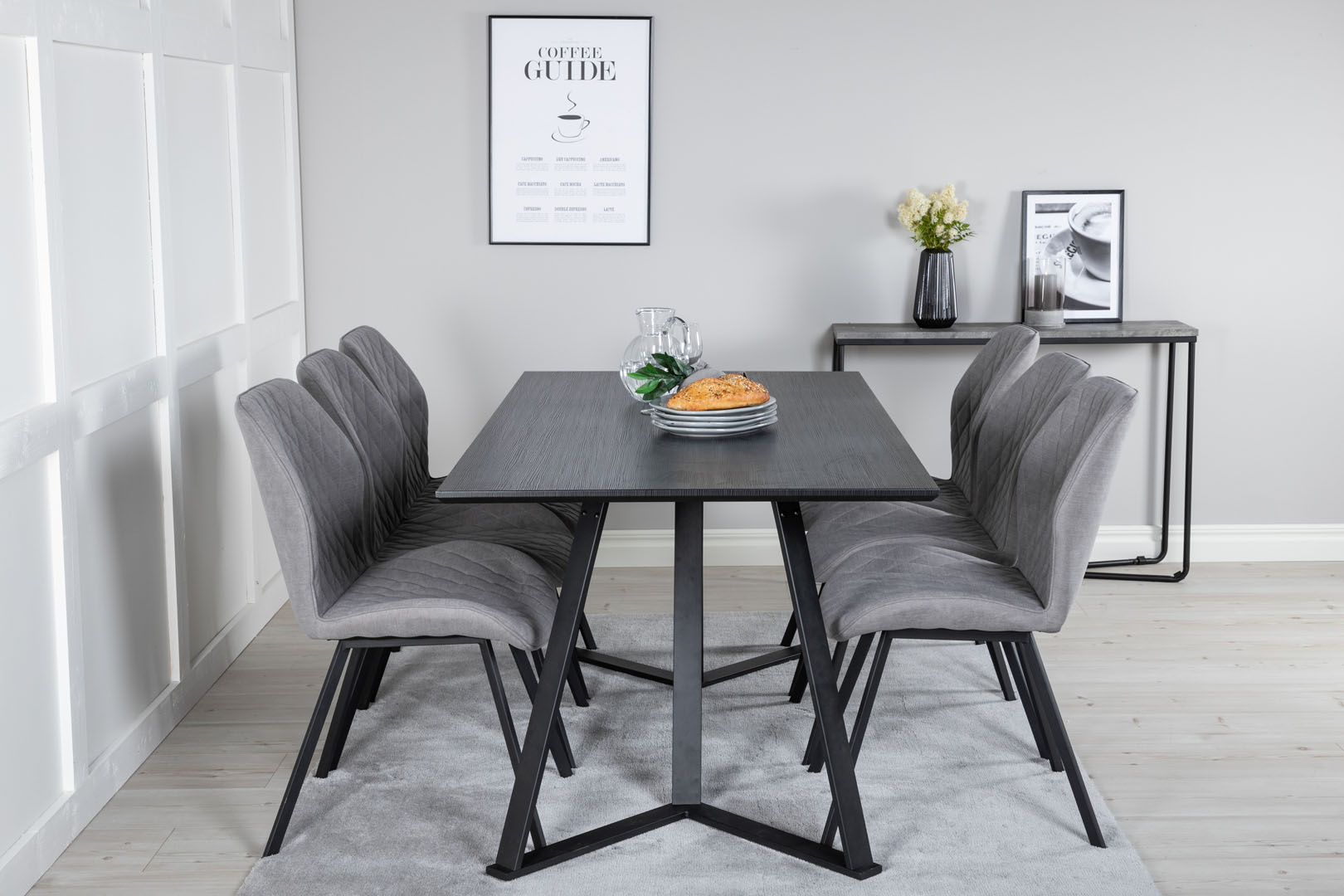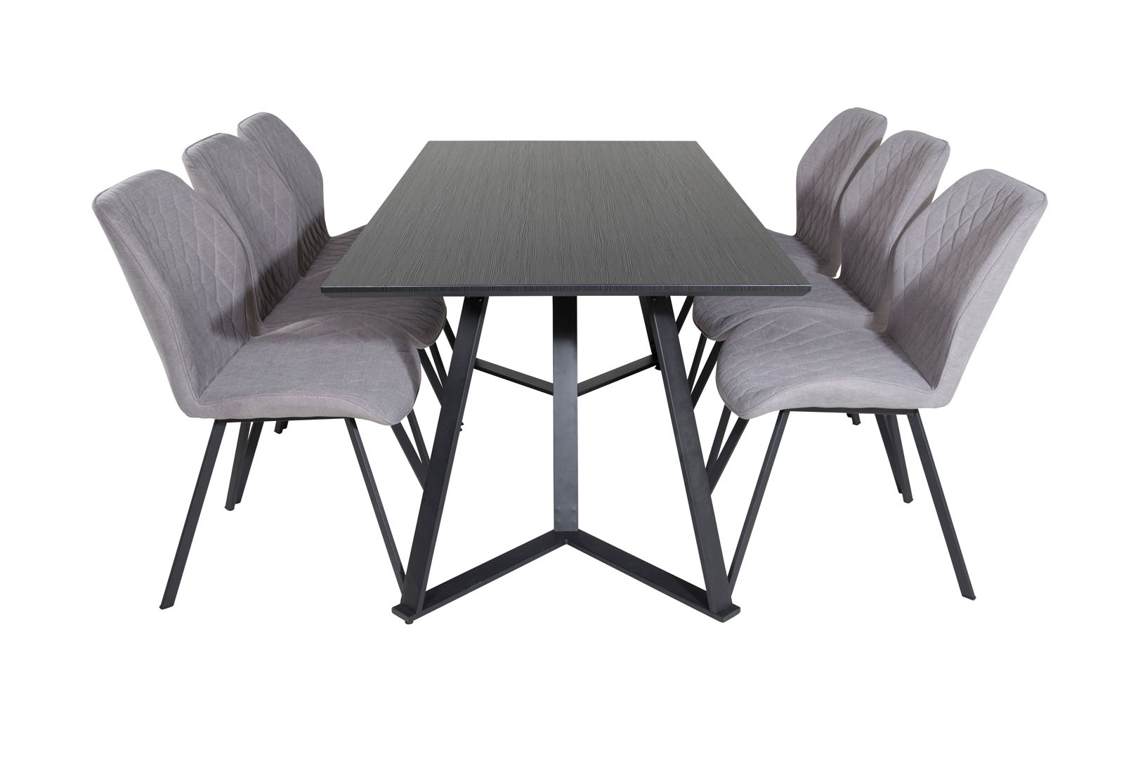 ebuy24 MarinaBLBL eethoek eetkamertafel zwart en 6 Gemma eetkamerstal grijs.