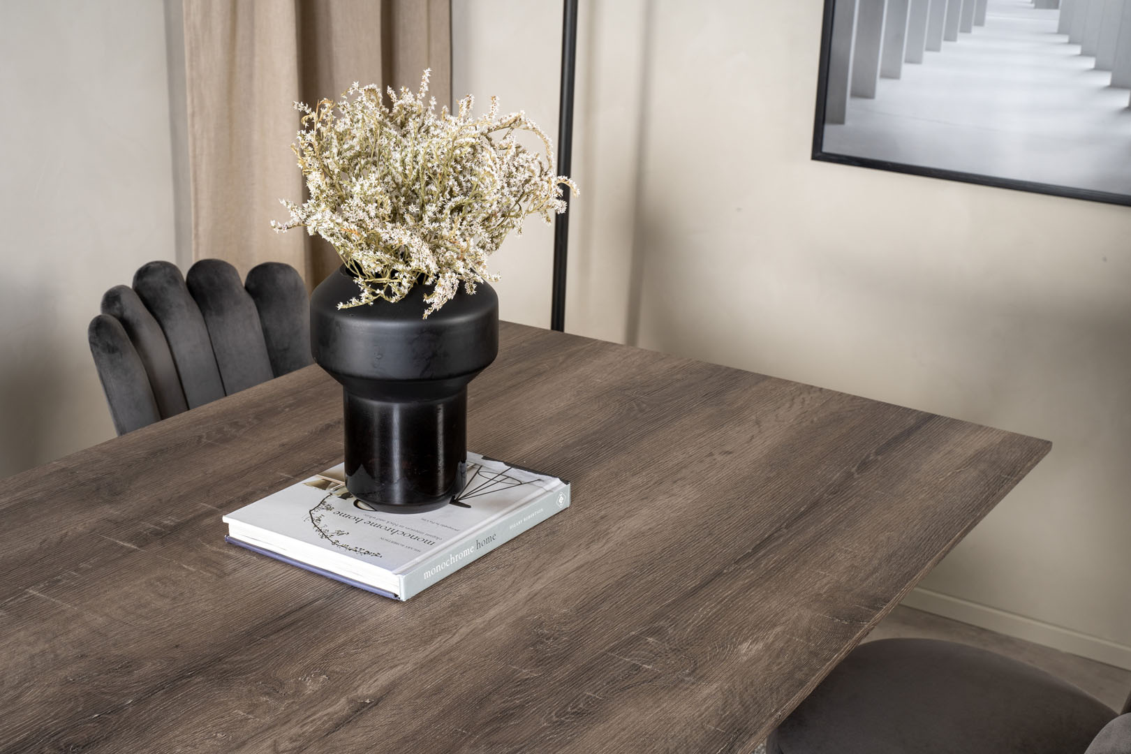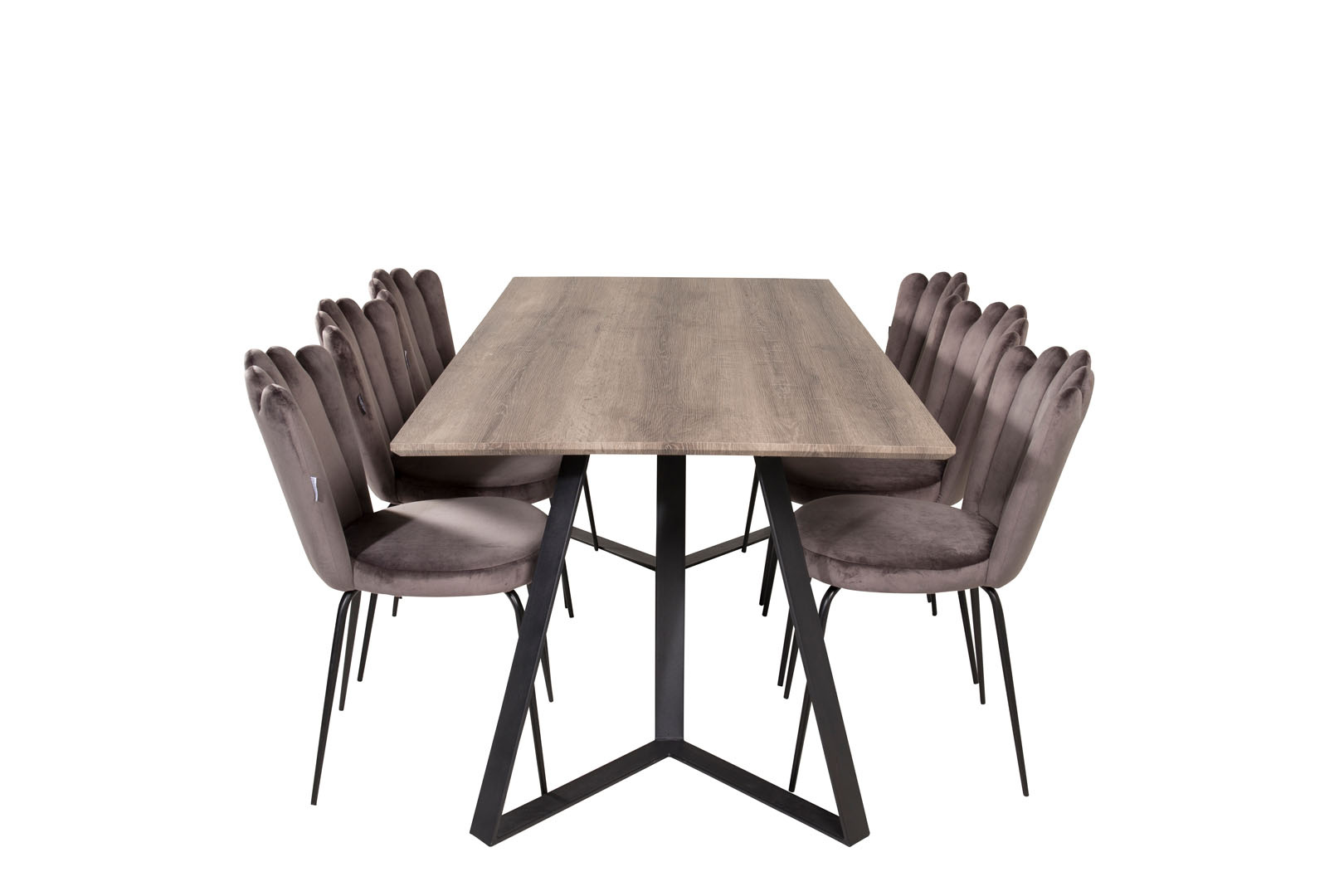 ebuy24 MarinaGRBL eethoek eetkamertafel el hout decor grijs en 6 Limhamn eetkamerstal velours grijs.