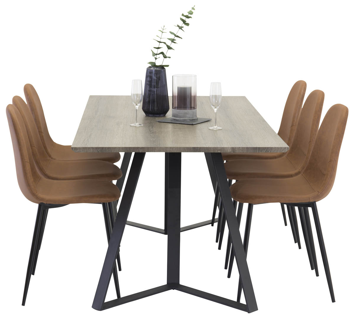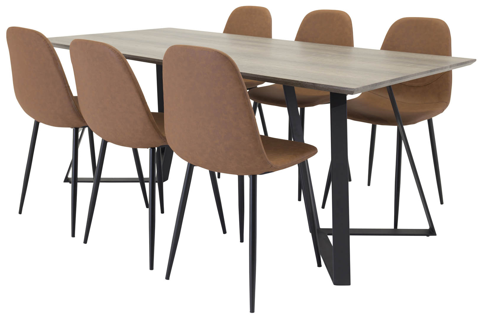 ebuy24 MarinaGRBL eethoek eetkamertafel el hout decor grijs en 6 Polar eetkamerstal PU kunstleer bruin.