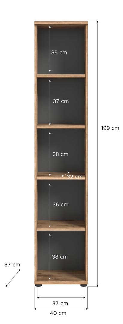 Productafmetingen: Breedte: 40 cm Diepte: 37 cm Hoogte: 199 cm