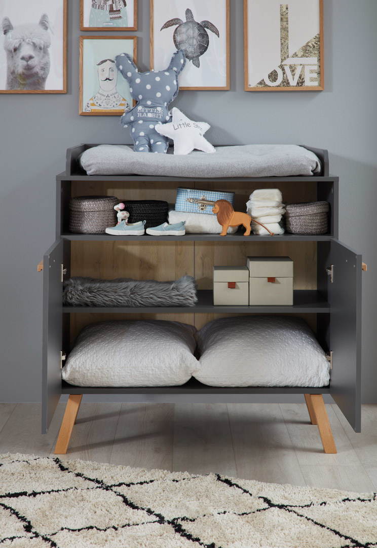 MatsBaby luiertafel 2 deuren, 1 open vak grijs. 1 legplank. Kleur behuizing: grijs melamine. Kleur voorkant: grijs melamine. Je ontvangt meubels van een goede kwaliteit met een aangenaam comfort, gemaakt in een stijlvol en mooi design. ...Lees uitgebreide product informatie