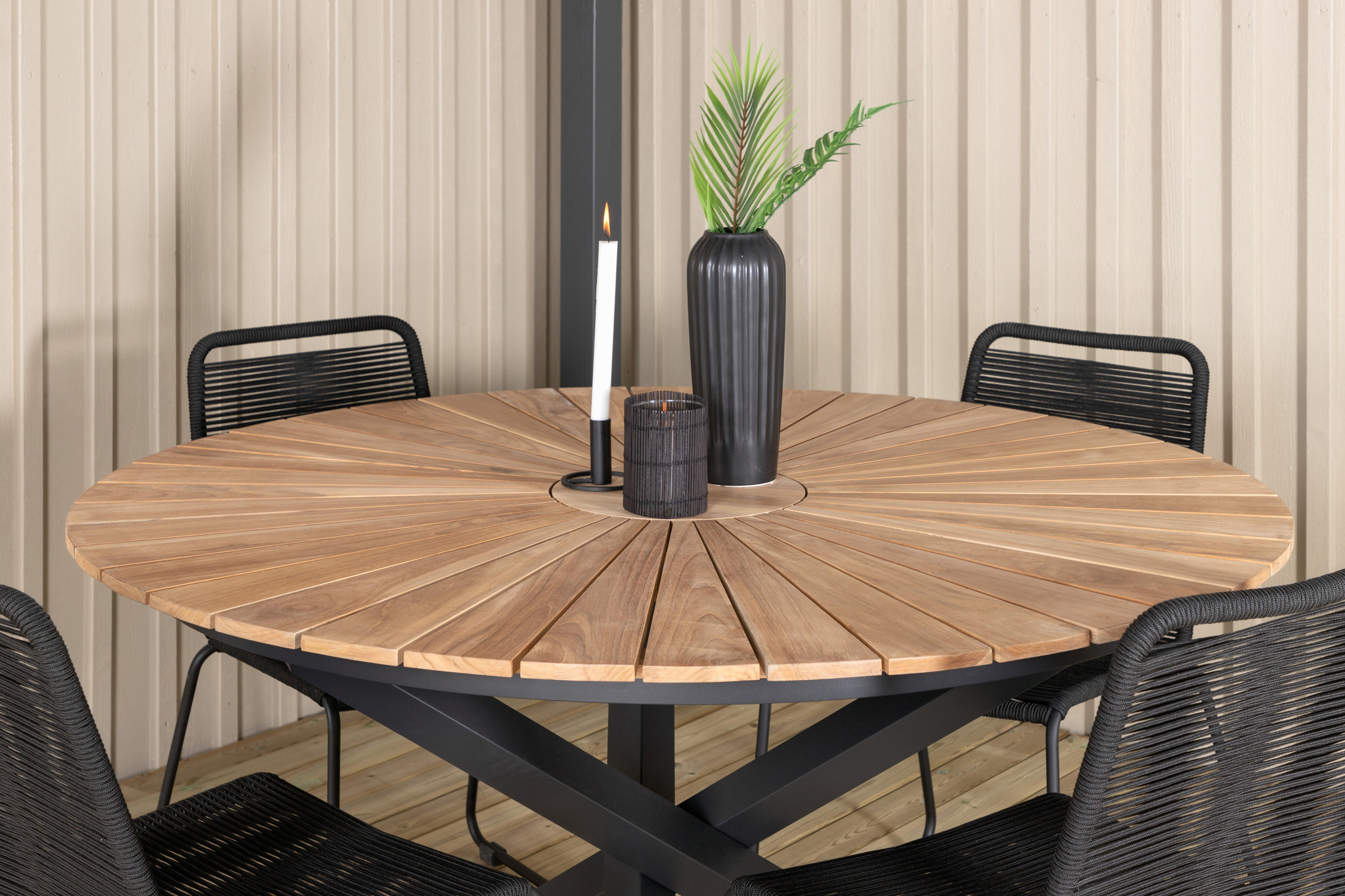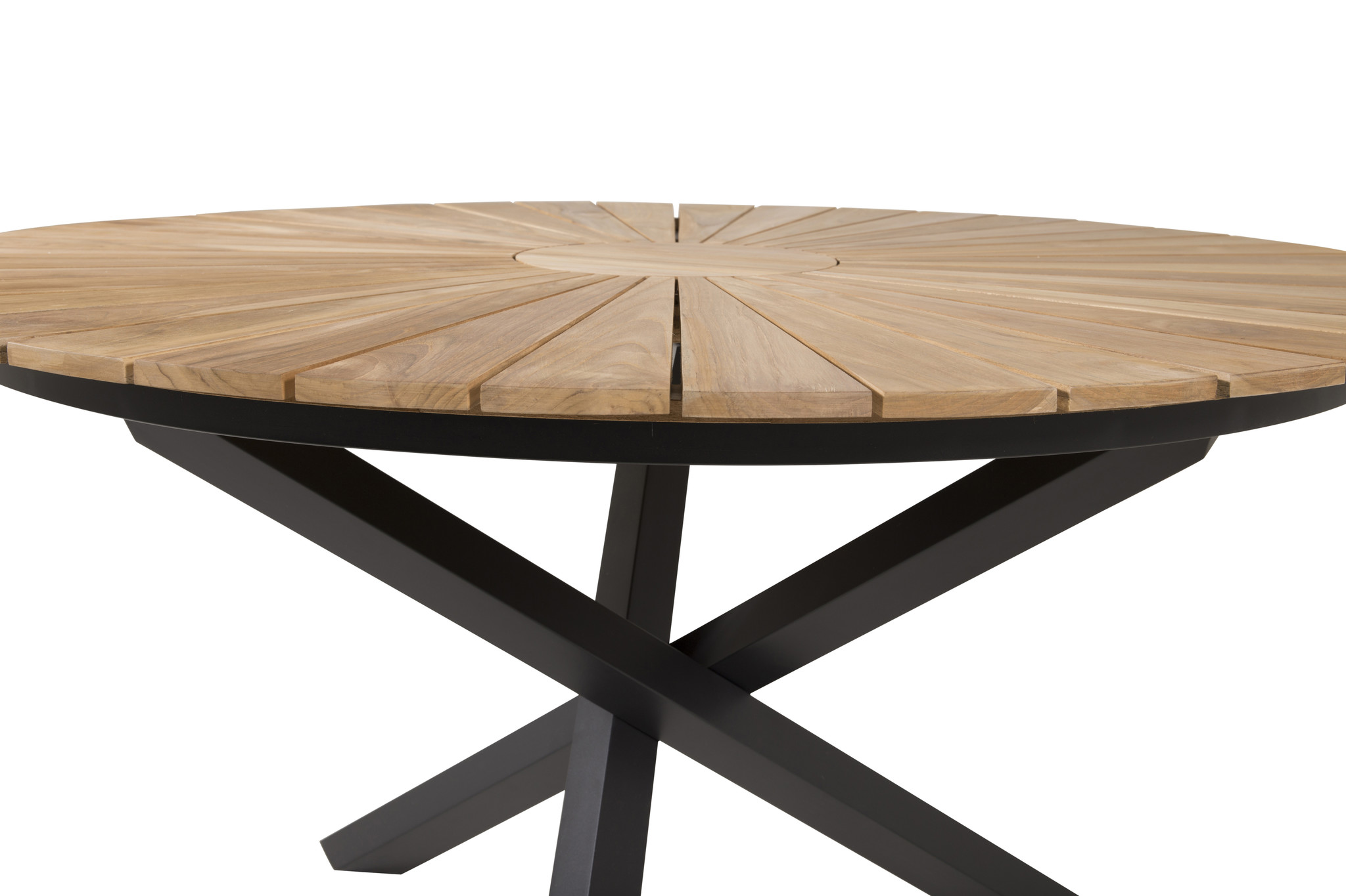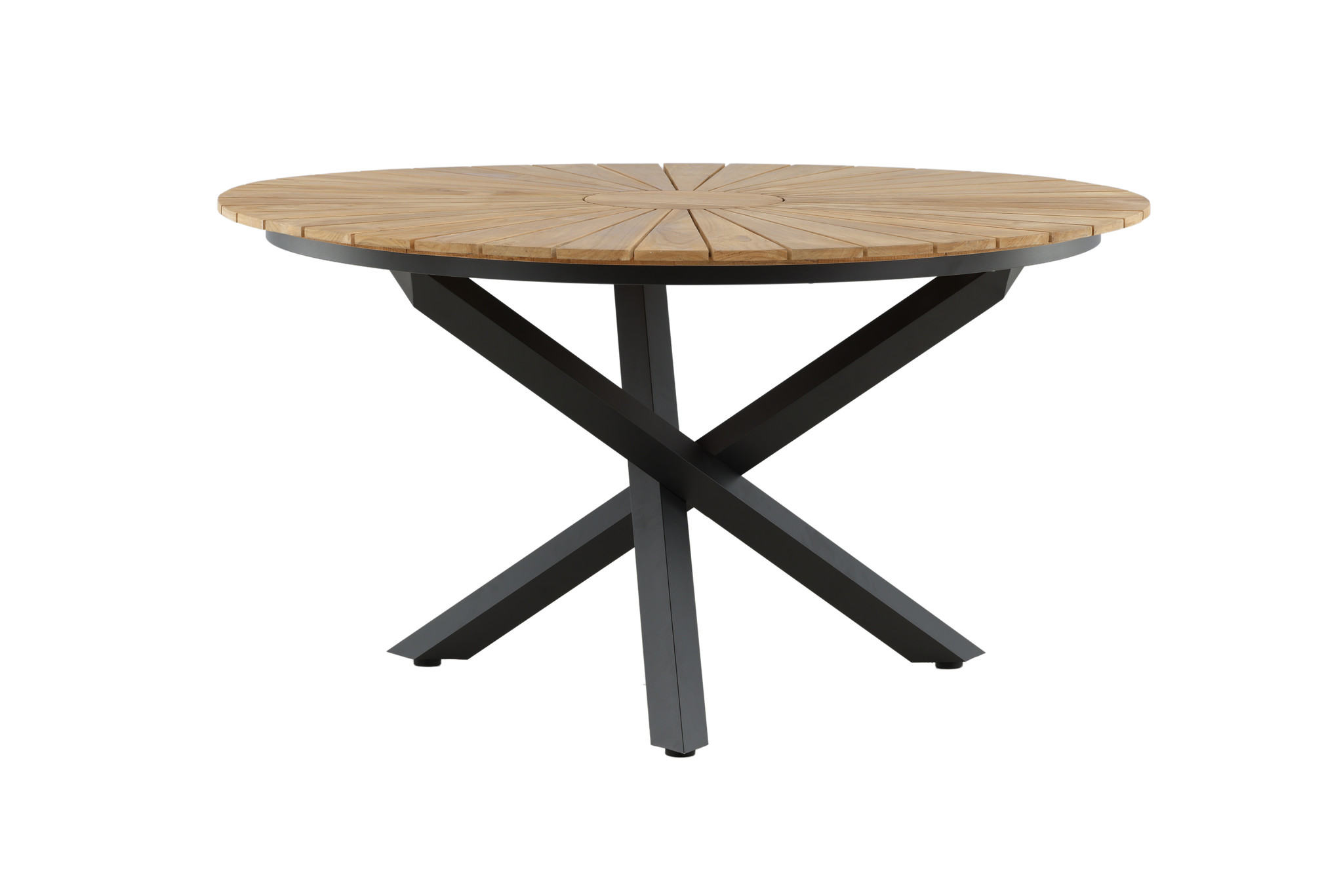 Mexico eettafel tuin Ø140 cm zwart, natuur.Afstand tussen tafelpoten - Lange zijde: 125 cm. Afstand tussen tafelpoten - korte zijde: 125 cm.