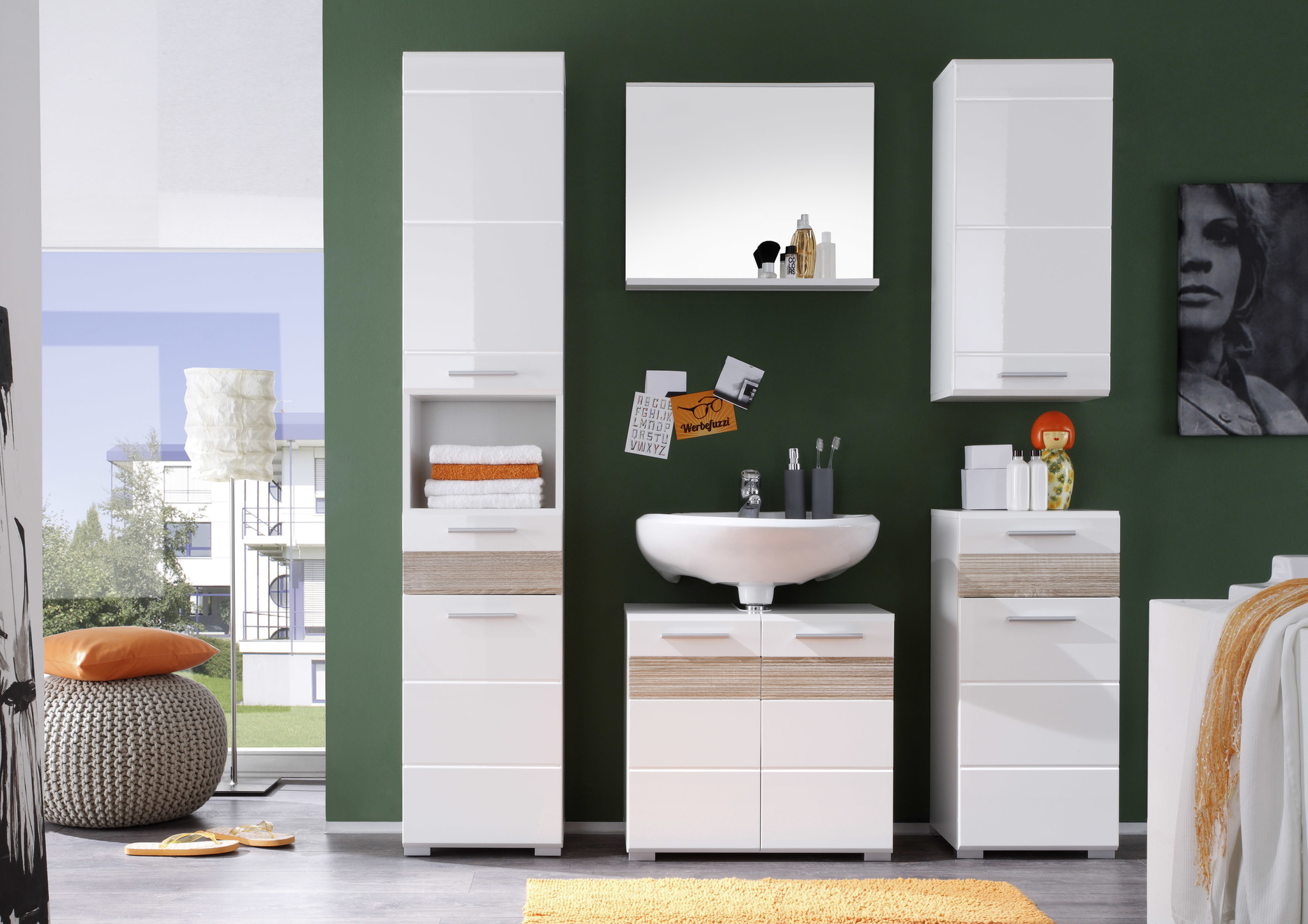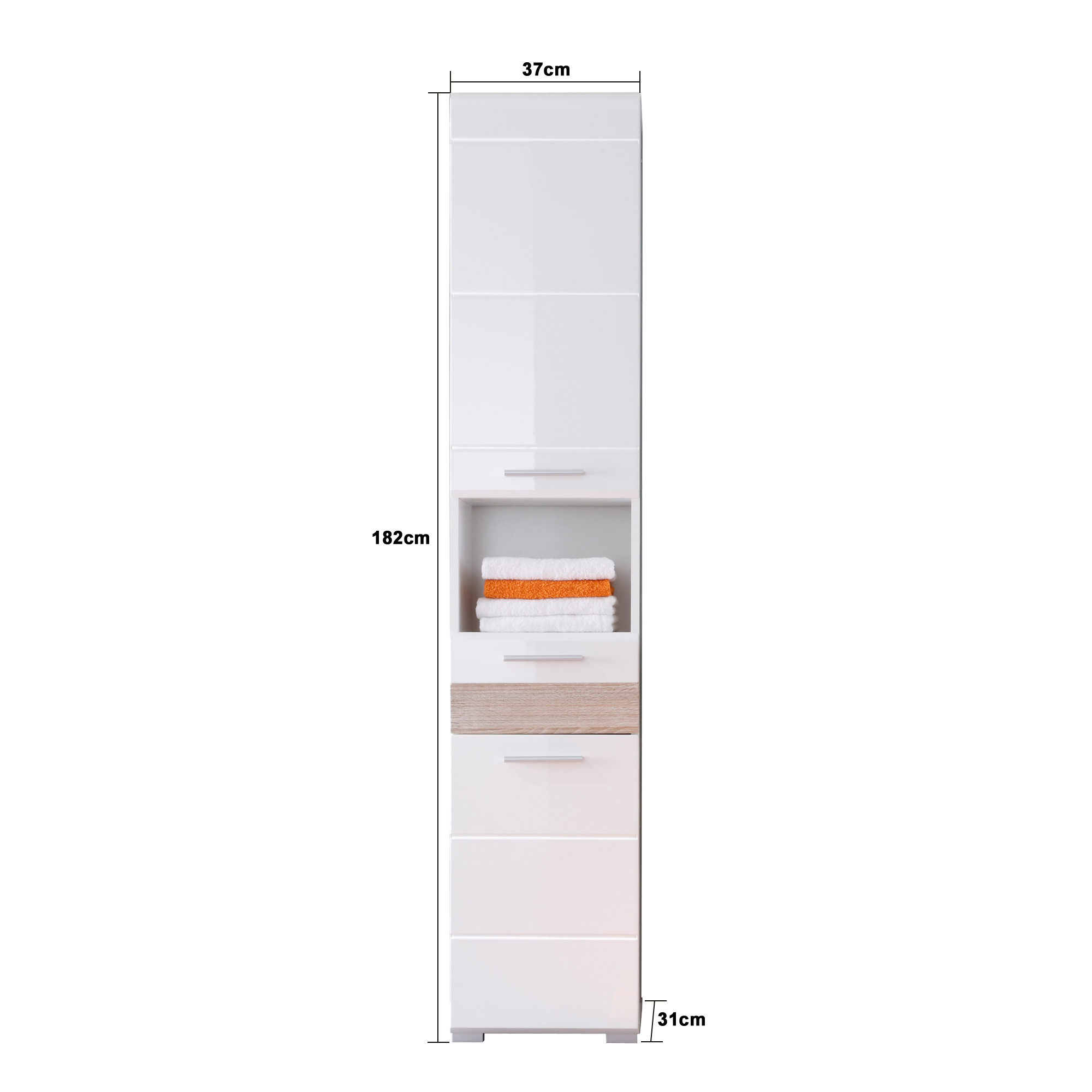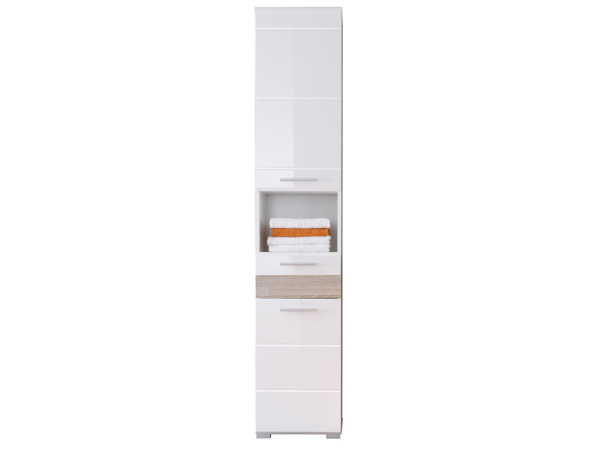 MezzoBad kolomkast hoog 2 deuren, 1 lade, 1 open vak wit, wit hoogglans, eiken decor. Je ontvangt meubels van een goede kwaliteit met een aangenaam comfort, gemaakt in een stijlvol en mooi design. ...Lees uitgebreide product informatie