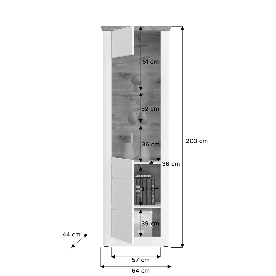 Productafmetingen: Breedte: 64 cm Diepte: 43 cm Hoogte: 204 cm