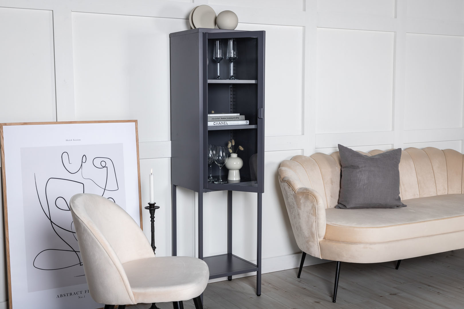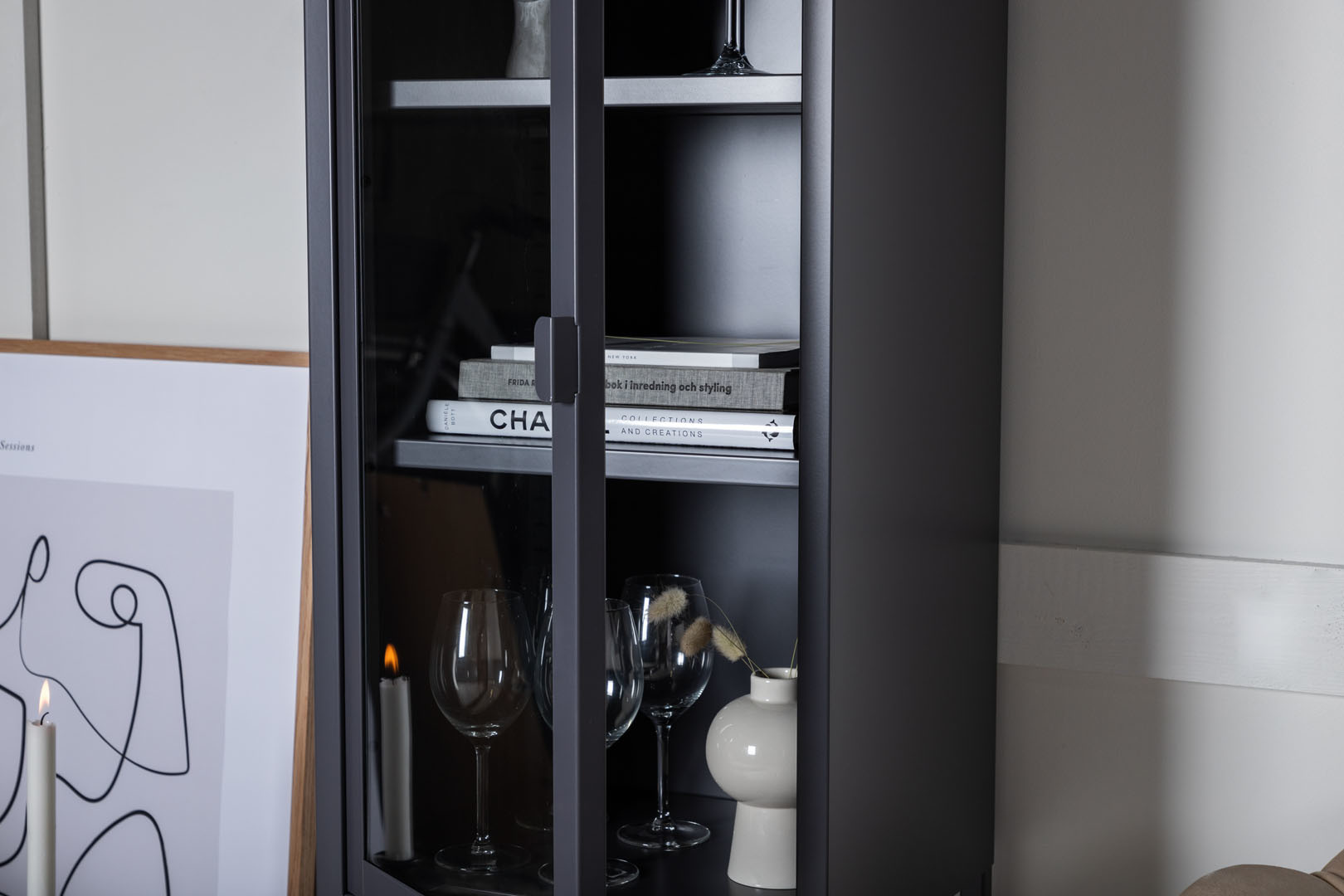 Misha vitrinekast 1 deur, 4 planken, grijs.