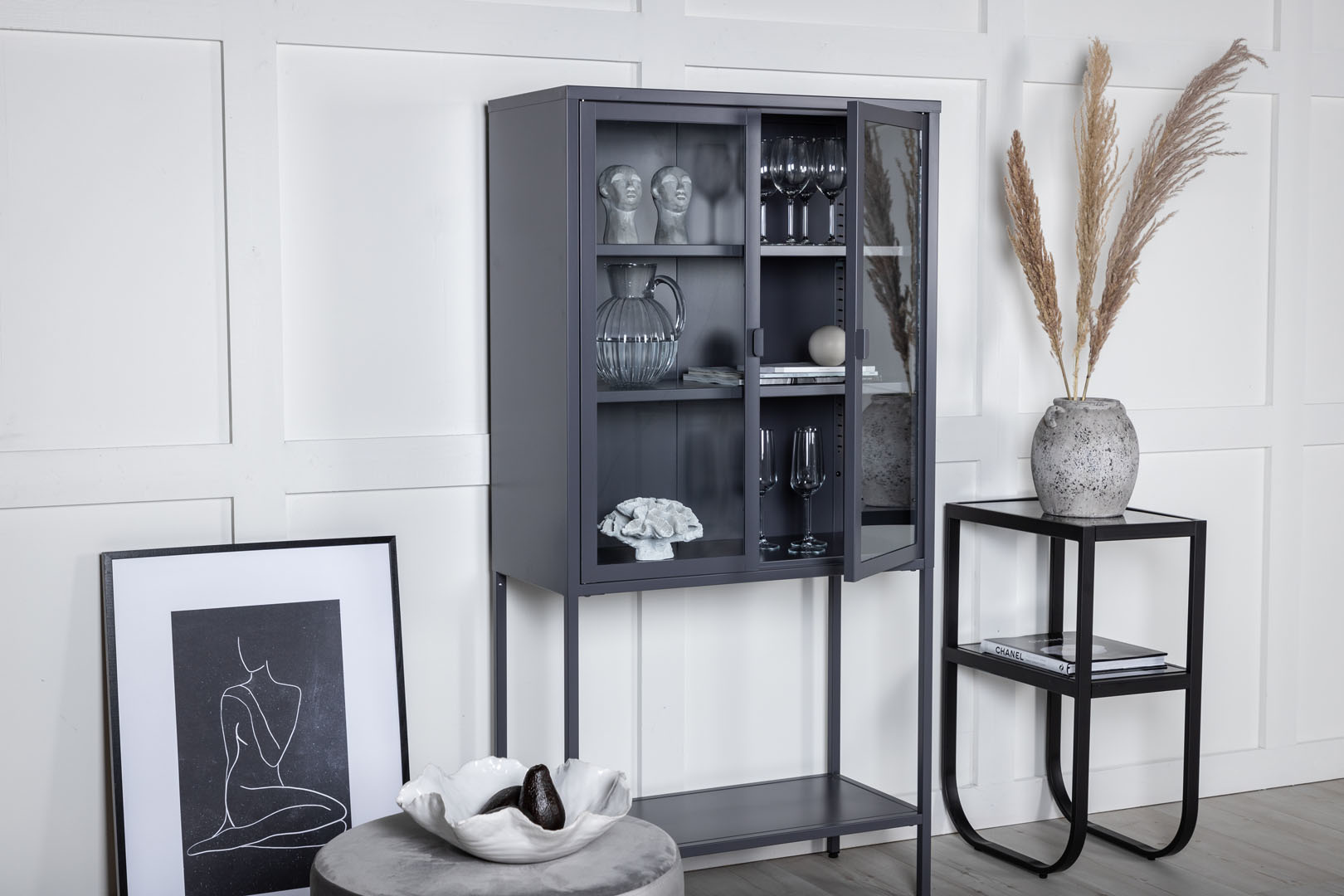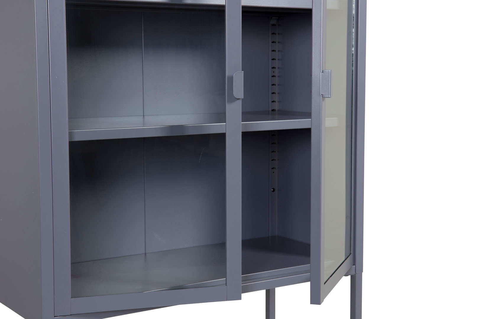 Misha vitrinekast 2 deuren, 4 planken, grijs.