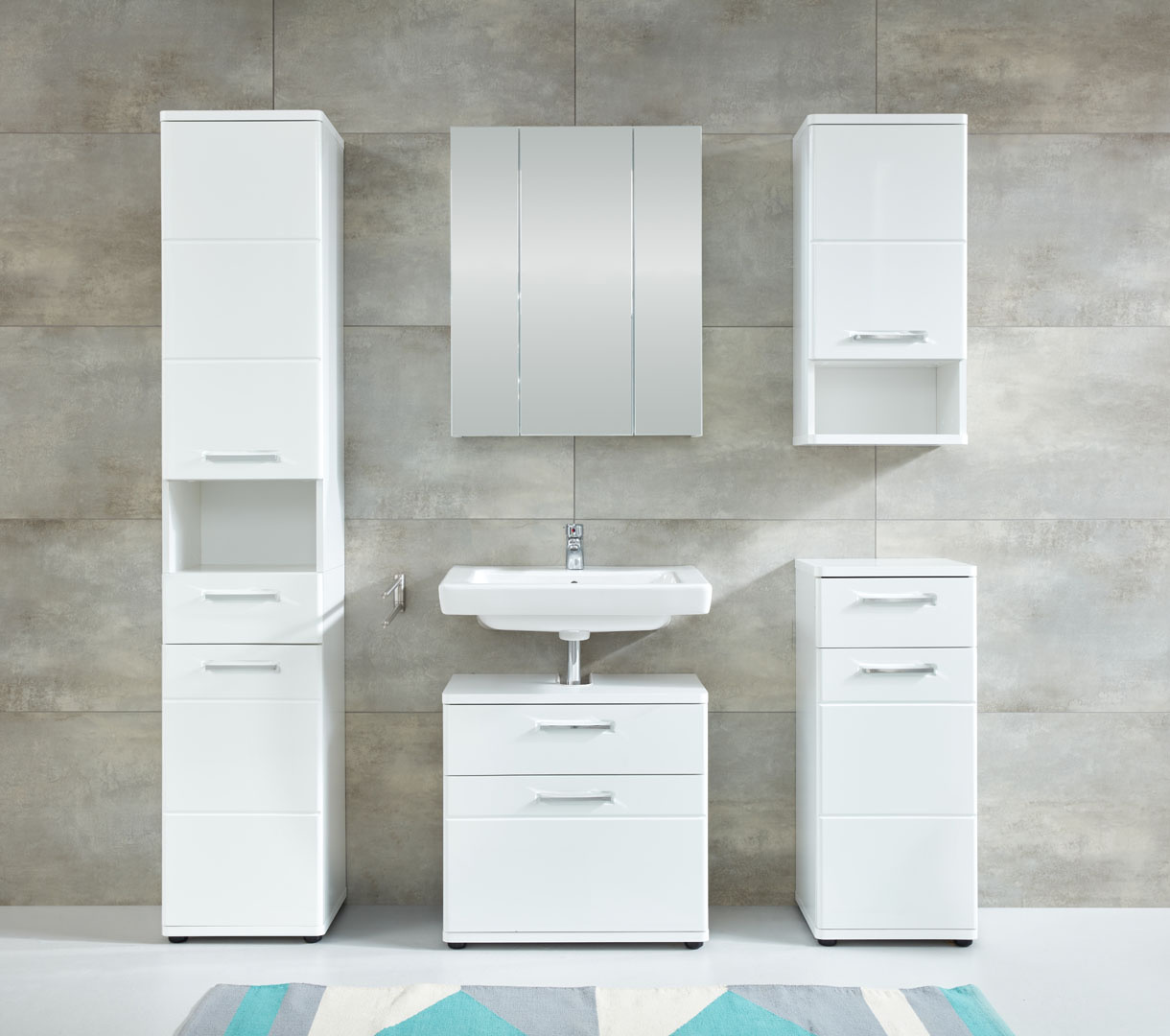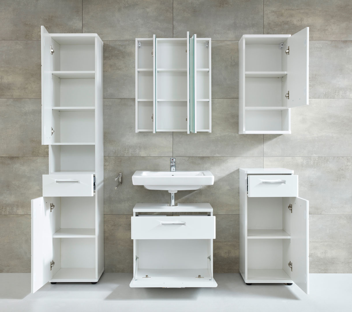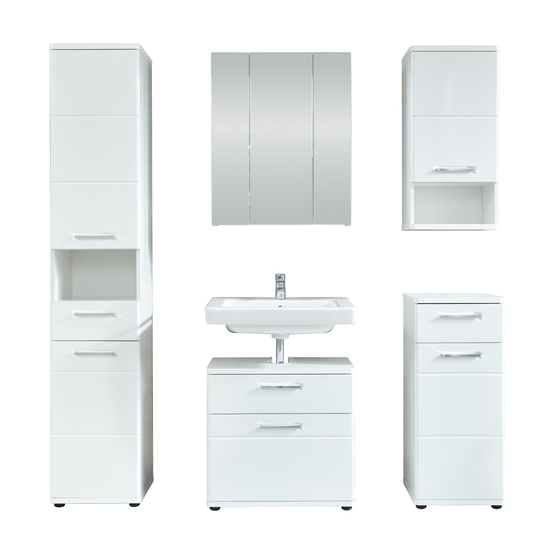 ebuy24 Monte badkamer met spiegelkast wit, wit hoogglans.