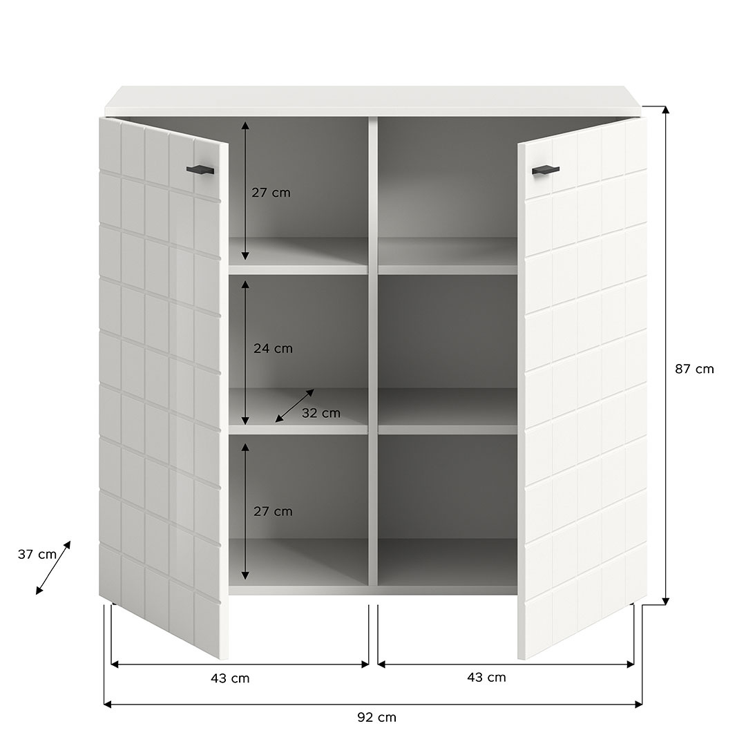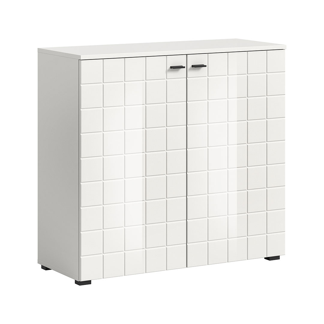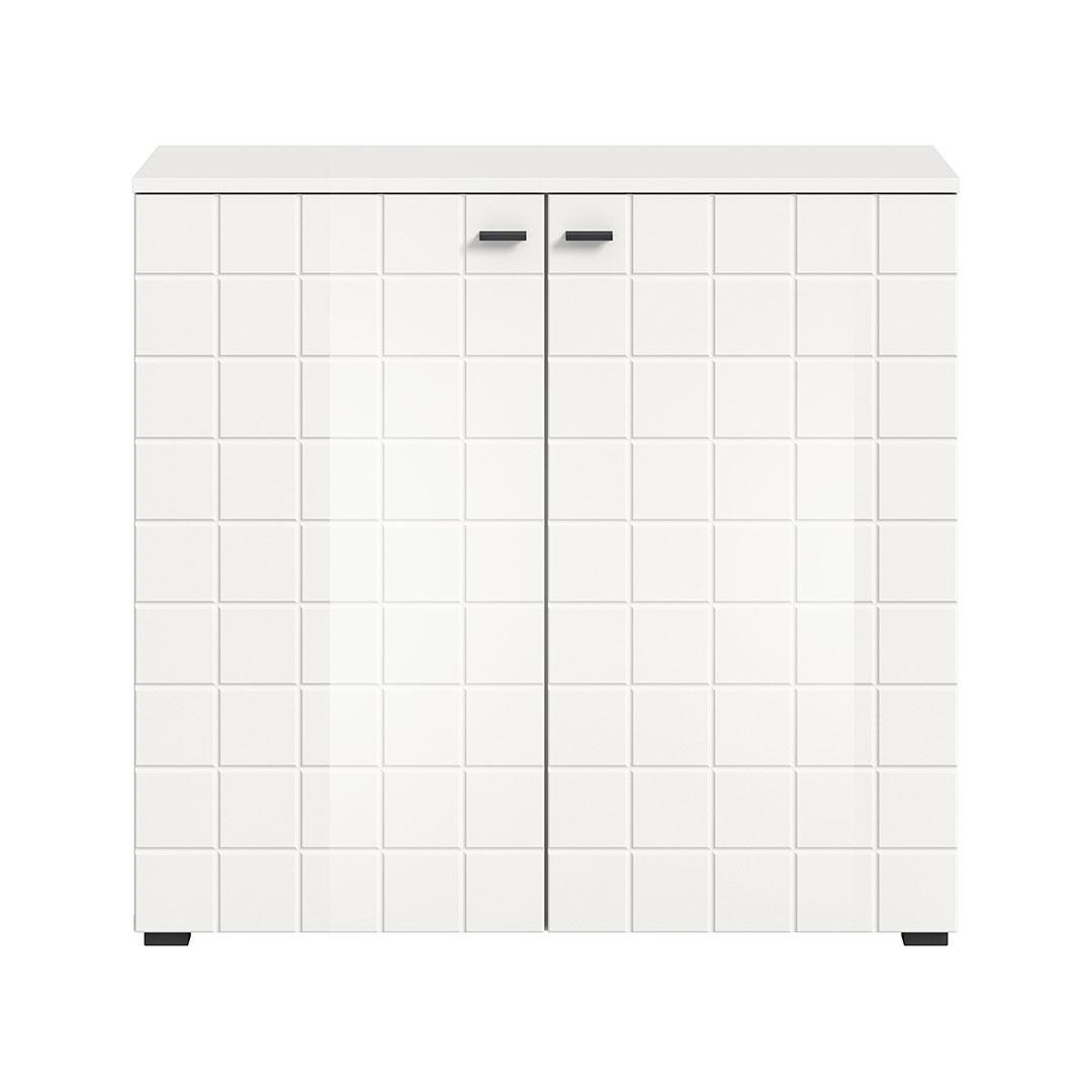 Monte dressoir 2 deuren wit hoogglans. Losse planken: 4. Monte dressoir met 2 deuren in hoogglans wit biedt een elegante en praktische opbergoplossing voor je huis. Met vier verstelbare planken biedt het dressoir voldoende ruimte voor het opbergen van boeken, documenten, decoraties of andere benodigdheden. De hoogglans en de stijlvolle details met de zwarte handgrepen op de deuren zorgen voor een moderne touch die perfect past in zowel de woonkamer als andere ruimtes in huis. Het dressoir zorgt voor een strakke en georganiseerde uitstraling en biedt zowel functionaliteit als esthetiek.