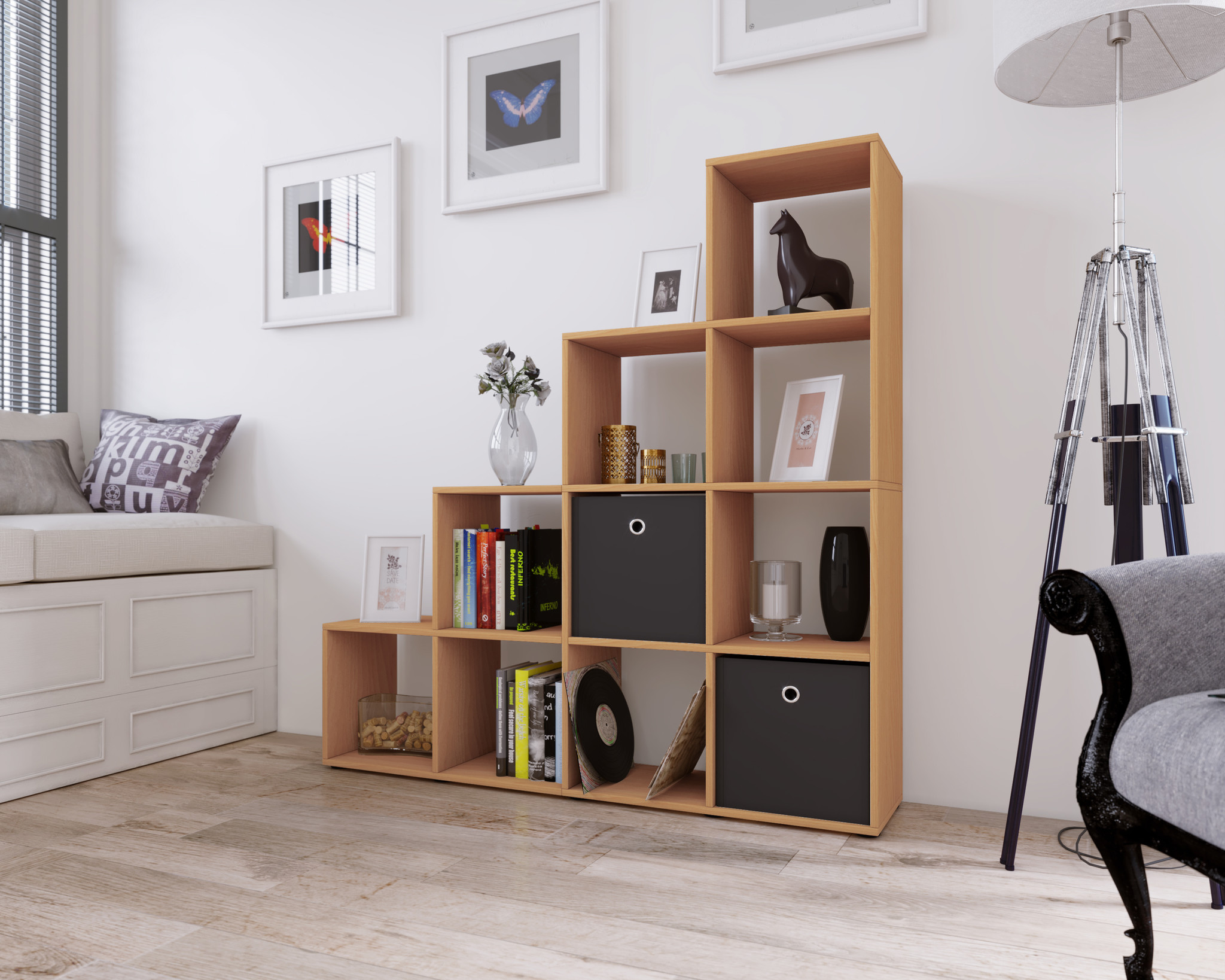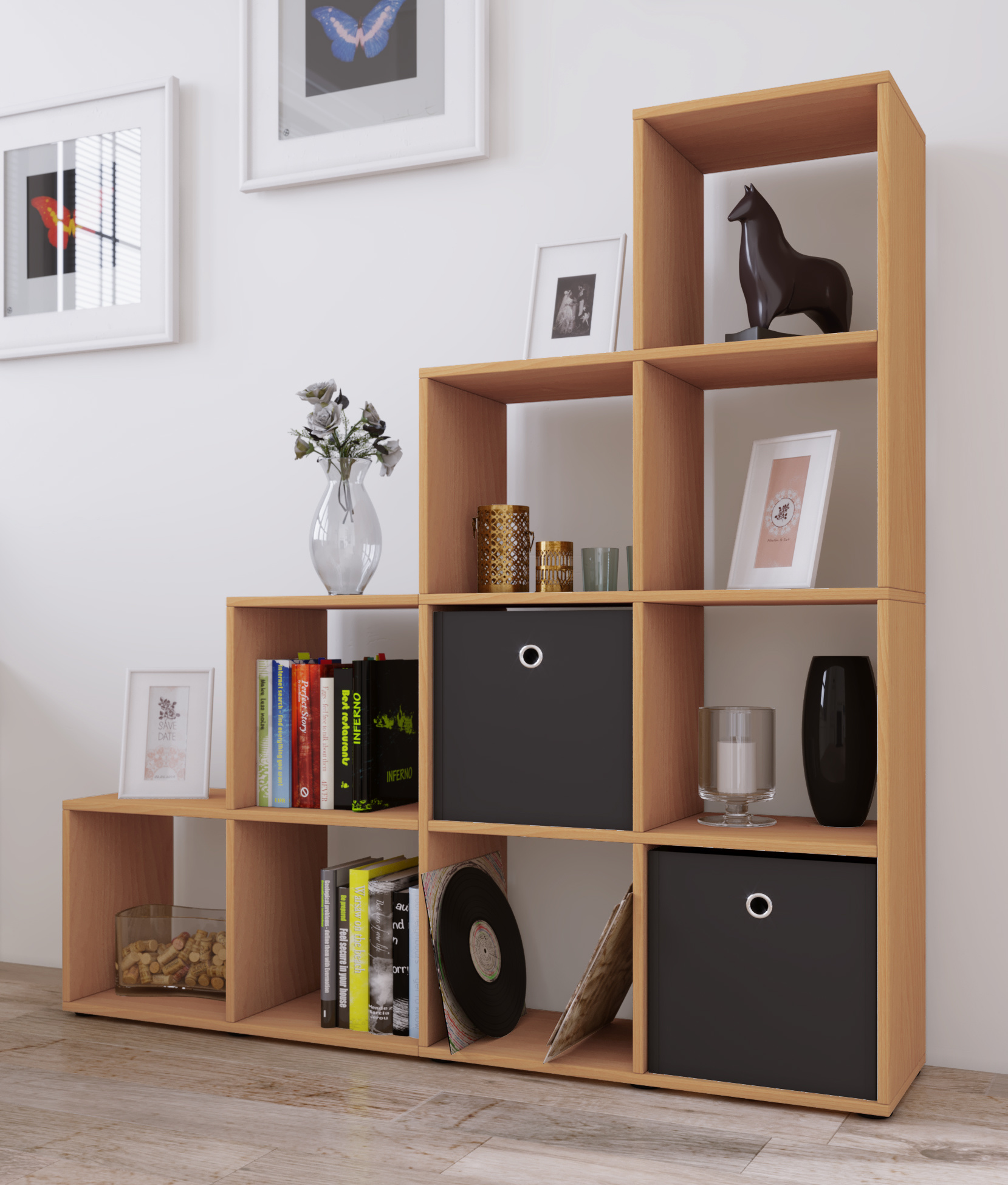 Nabini wandkast , kamerverdeler 10 vakken Beuken decor.