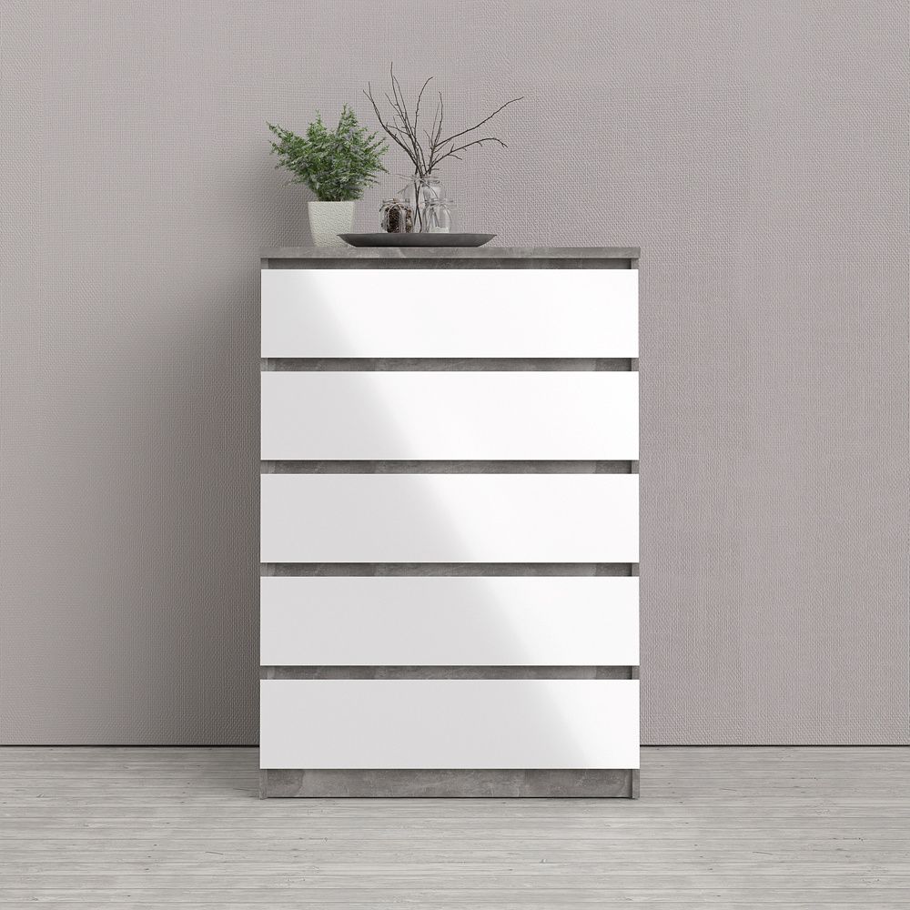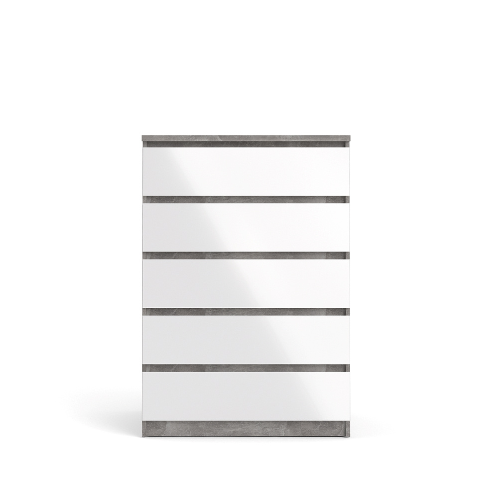 ebuy24 Nada kommode hoog met 5 lades, betondecor/wit hoogglans.