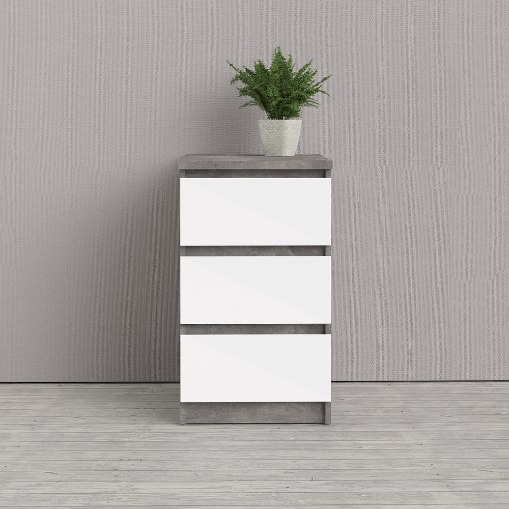 ebuy24 Nada kommode laag en smal 3 lades, betondecor/wit hoogglans.