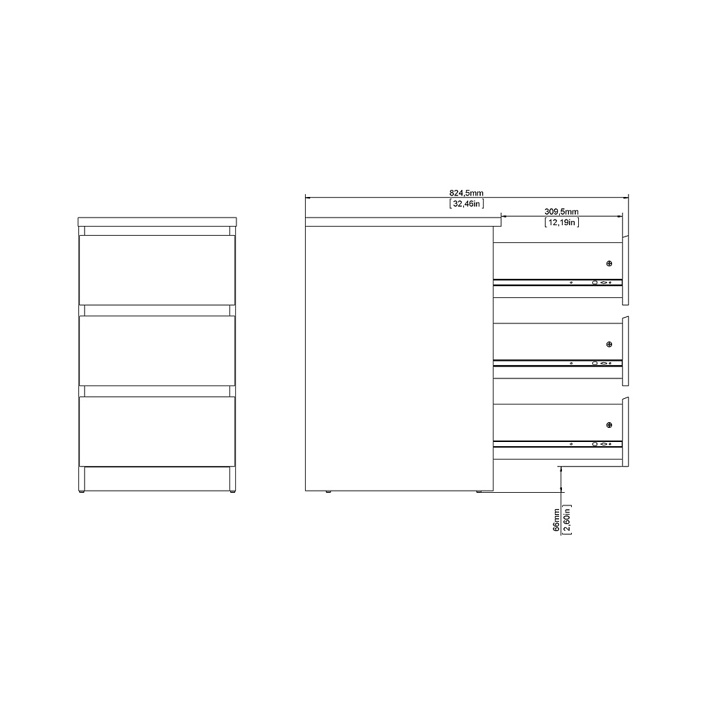 ebuy24 Nada kommode laag en smal 3 lades, matzwart.