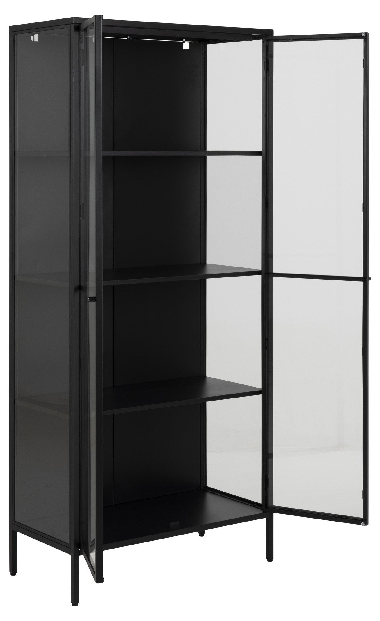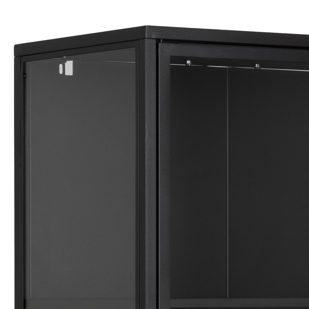 Newbor vitrinekast H180 met 2 glazen deuren, zwart.