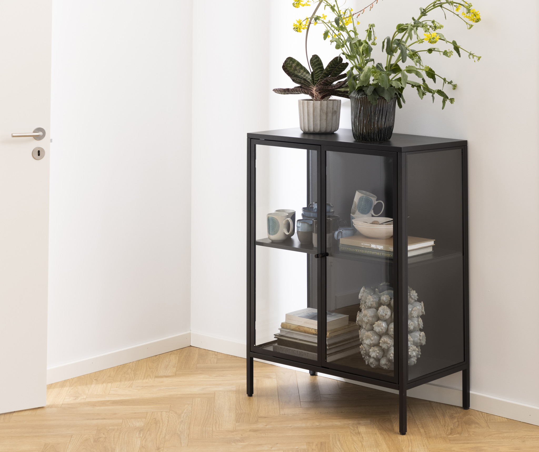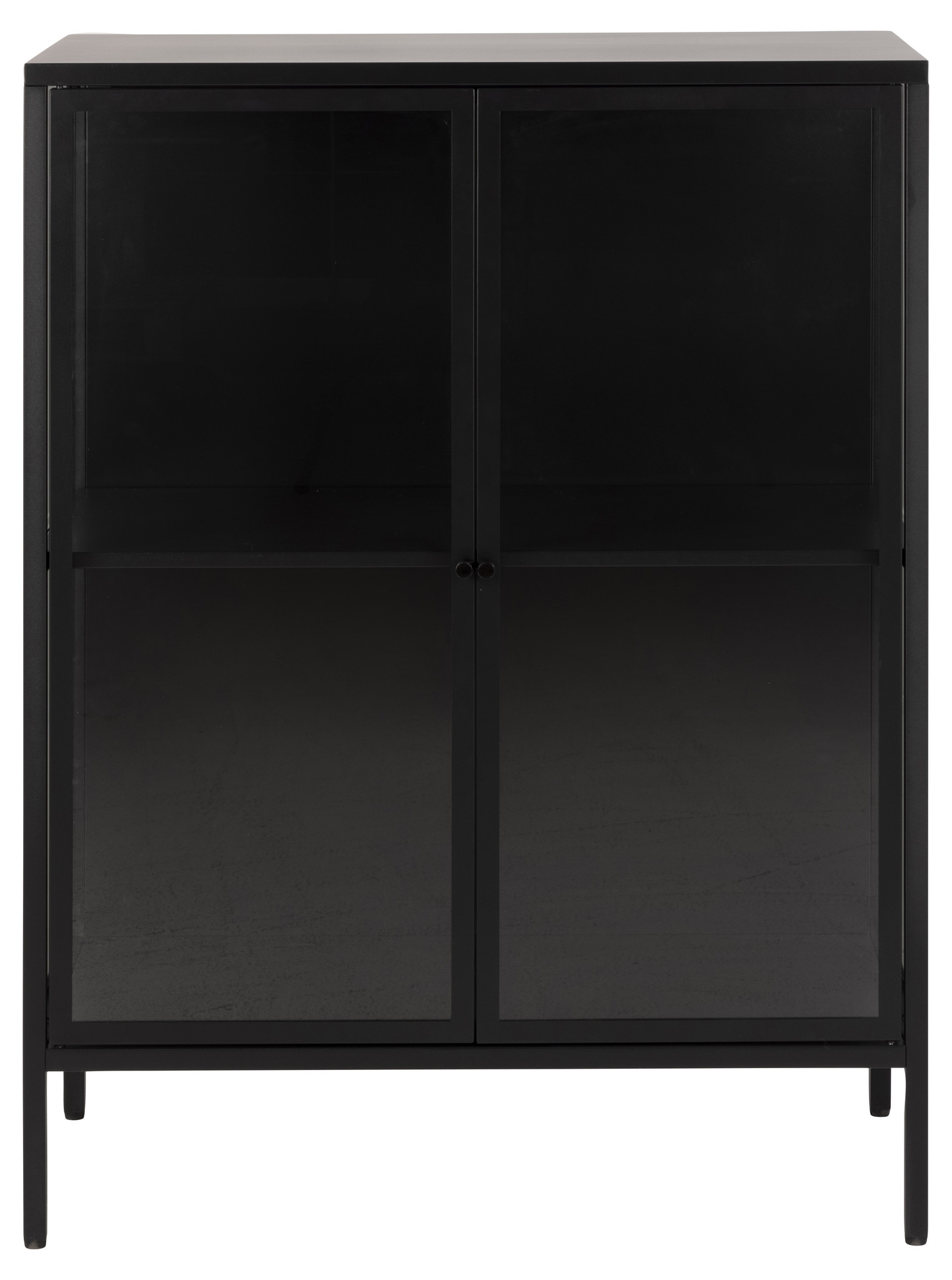 Newbor vitrinekast H99 met 2 glazen deuren, zwart.
