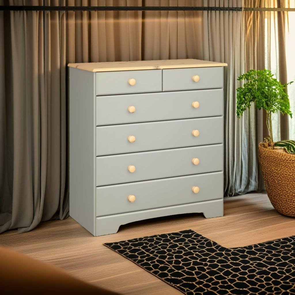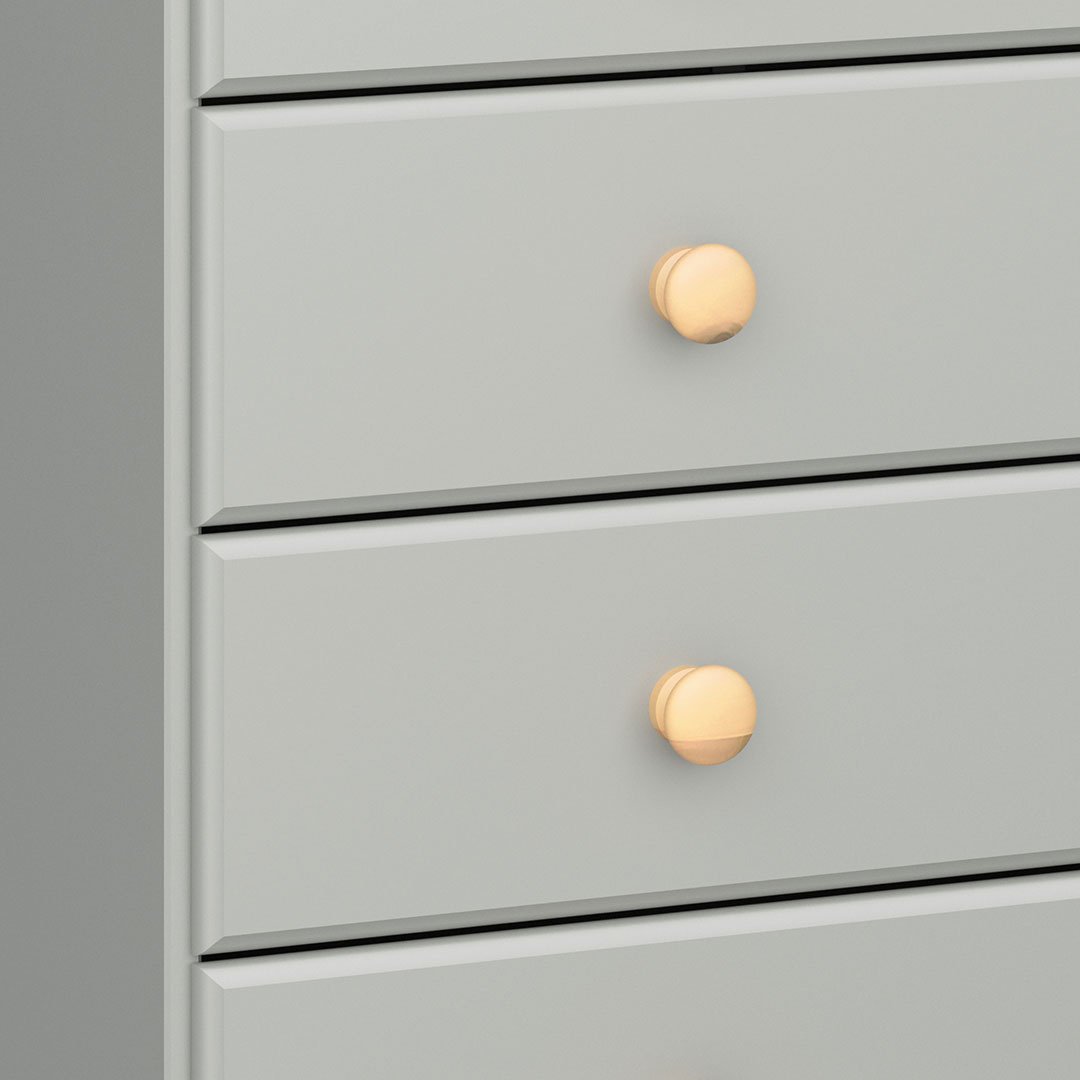 Het nylon dressoir met zes lades is een prachtige combinatie van klassiek design en praktische opbergruimte. Met zijn warme grijze kleur en het gouden bovenblad voegt de ladekast een natuurlijke en gezellige sfeer toe aan elke kamer. De zes ruime lades bieden voldoende ruimte om alles te ordenen, van kleding en beddengoed tot kleinere spullen.Het solide ontwerp en de afgeronde randen maken de ladekast zowel elegant als robuust. De gouden houten handgrepen benadrukken de natuurlijke uitstraling en zorgen ervoor dat de lades gemakkelijk te openen zijn. Deze ladekast is een veelzijdig meubelstuk dat perfect past in de slaapkamer, woonkamer of inkomhal.