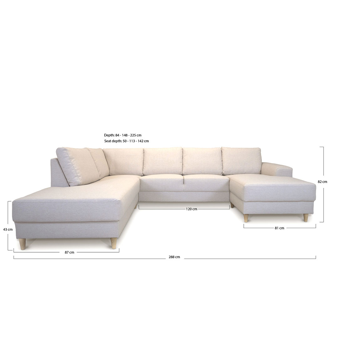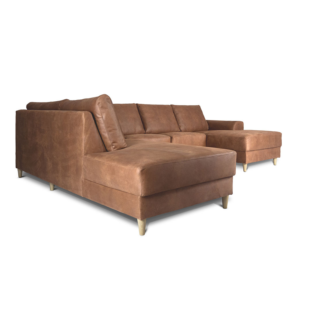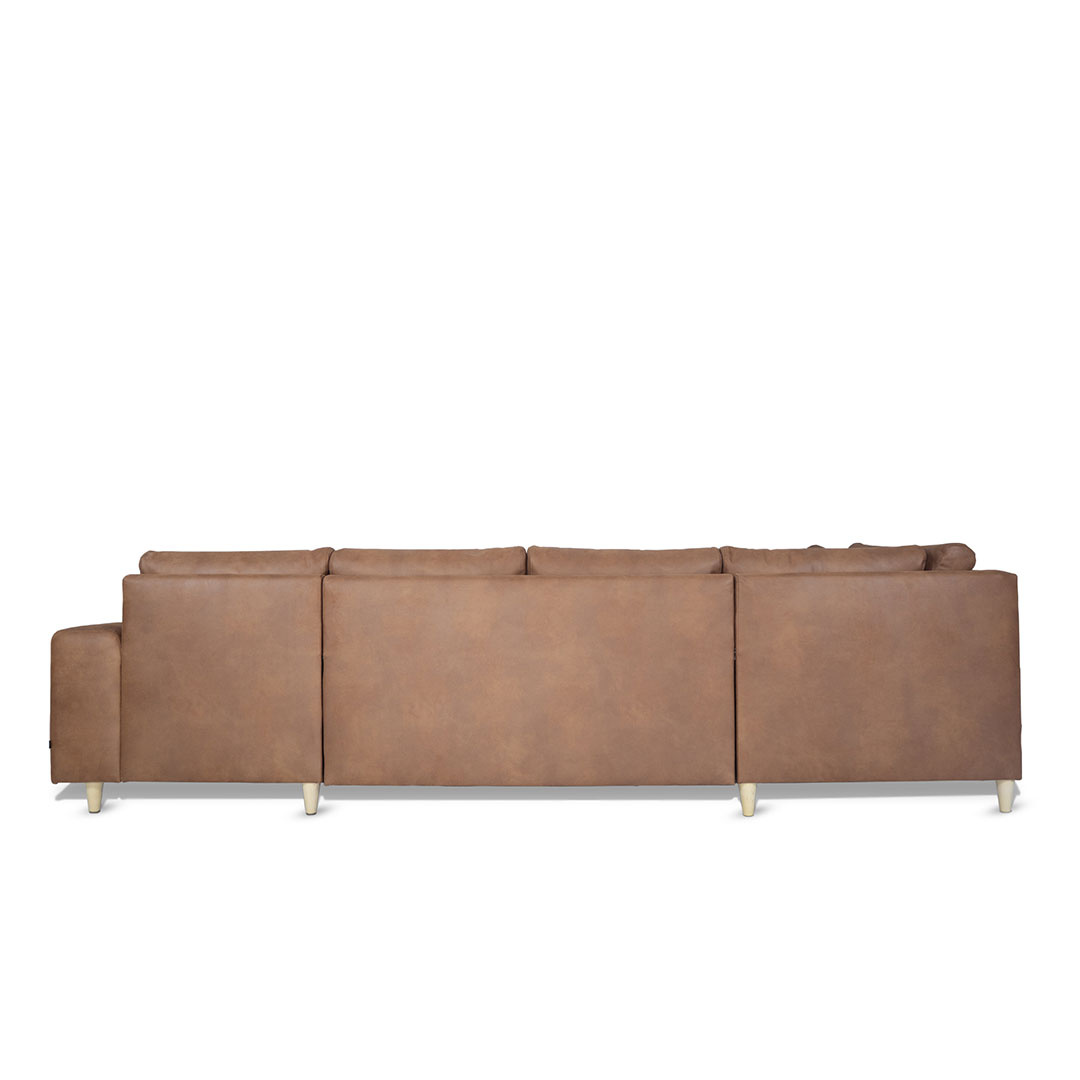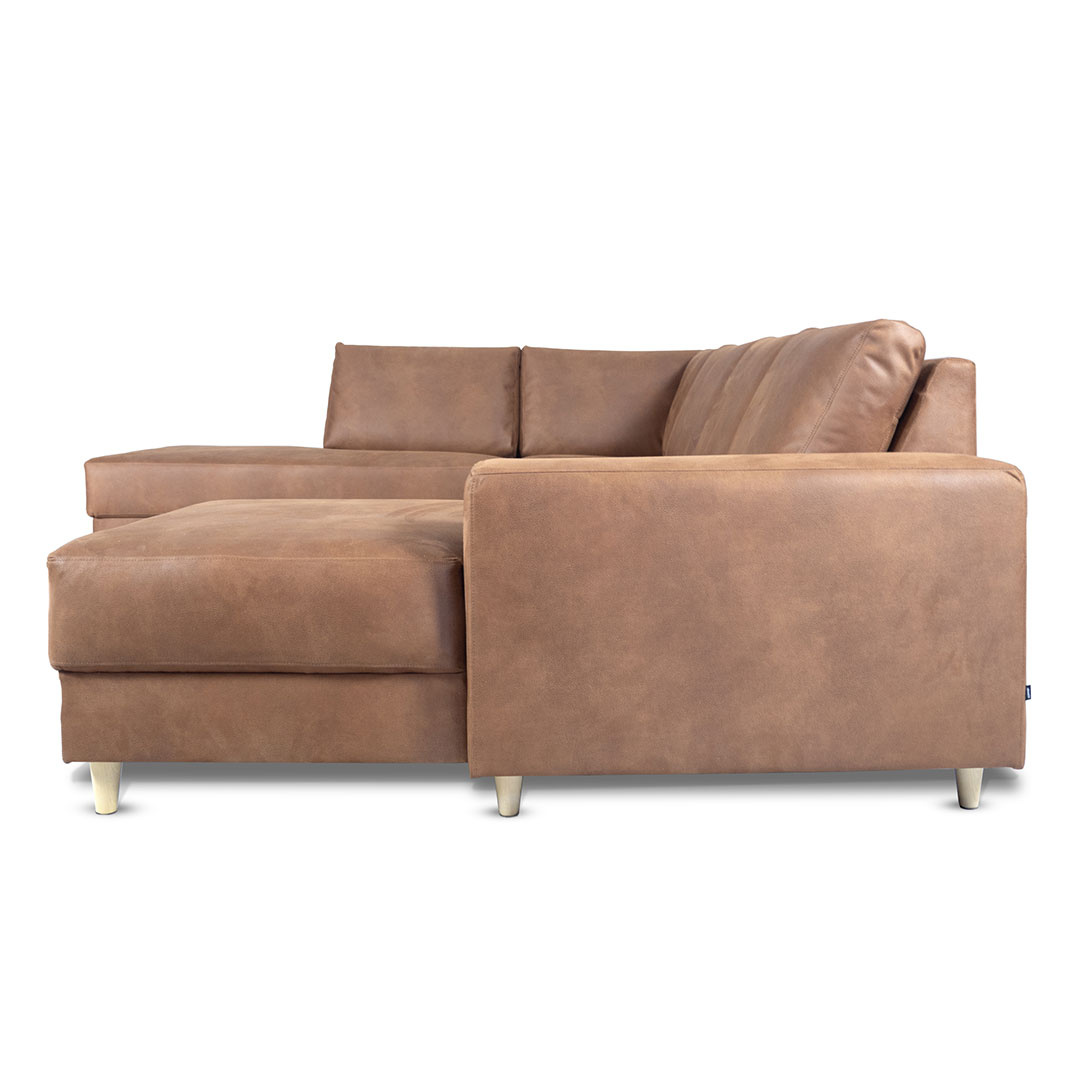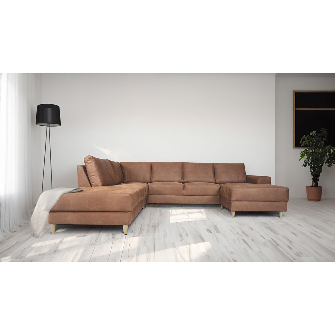 Nordic Ubank links gericht cognackleurig leer. Hoes Rating "colour fastness to light": 4. Hoes Rating "pilling": 4-5."Pilling", Opvulling van de stof, gaat van 0-5, waar 5 het beste is. "Colour fastness to light", Kleurechtheid, gaat van 1-8, waar 8 het beste is. Nordic U-bank links gericht Cognackleurig leer. Geef je huis een elegante en tijdloze uitstraling met de naar links gerichte Nordic U bank in cognackleurig leer. Deze ruime zitbank is perfect voor het hele gezin en vormt een ideaal ontmoetingspunt waar zowel ontspanning als gezelligheid kunnen plaatsvinden. De zitting is bekleed met PU-schuim, wat zorgt voor een stevige en stabiele ondersteuning, terwijl de rugkussens, gevuld met korrels, zorgen voor een zachter comfort voor de rug, waardoor de bank extra comfortabel is om op te ontspannen.Met zijn grote en open vorm is de Nordic U bank zowel perfect om achterover te leunen en te genieten van een rustig moment als om vrienden te verzamelen voor een gezellig samenzijn. Door het klassieke ontwerp van de bank past hij gemakkelijk in de meeste woningen, en de strakke poten, die mooi afsteken tegen de rechte lijnen van de bank, zorgen voor een opvallende en doorlopende totaalindruk die de aandacht trekt.De cognackleurige lederen variant voegt warmte en elegantie toe aan de kamer, en met de Nordic U bank haal je een stijlvolle en functionele oplossing in huis. Afhankelijk van welke variant je kiest, kun je een heel andere uitstraling bereiken - of je nu een strakke en stoere look wilt, of een warmere en klassieke look. Welke stijl je ook kiest, de Nordic U bank zal een fantastische toevoeging zijn die zowel praktisch als mooi is.