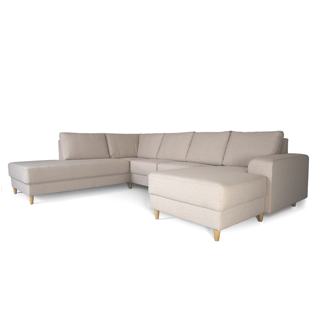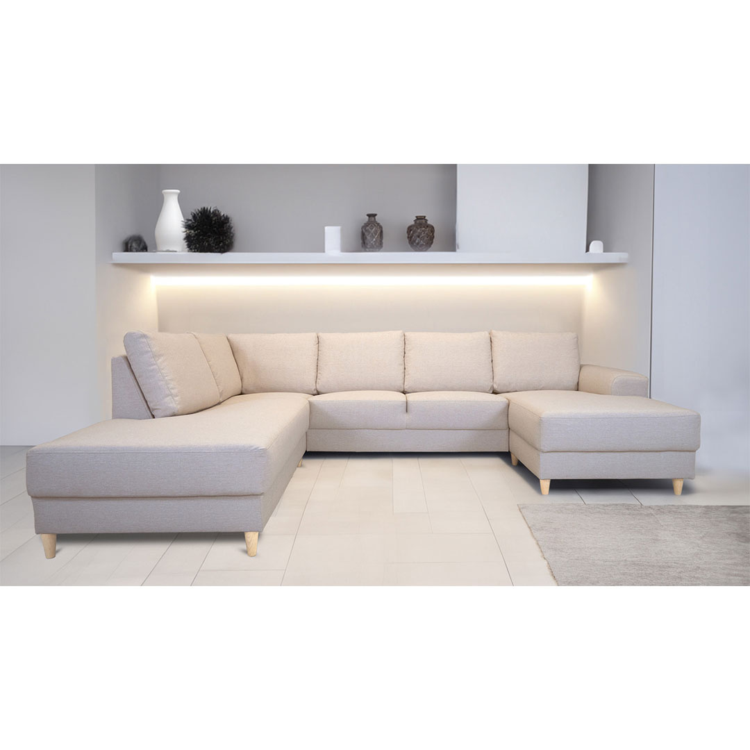 Nordic Ubank links gericht licht beige. Hoes Rating "colour fastness to light": 5. Hoes Rating "pilling": 4-5."Pilling", Opvulling van de stof, gaat van 0-5, waar 5 het beste is. "Colour fastness to light", Kleurechtheid, gaat van 1-8, waar 8 het beste is. Nordic U-bank links gericht Lichtbeige. Ervaar de perfecte mix van comfort en stijl met de naar links gerichte Nordic U bank in lichtbeige. Deze bank is gemaakt om aan de behoeften van het hele gezin te voldoen - van ontspanning tot aangename momenten met vrienden. De zitting is opgevuld met PU-schuim, wat zorgt voor een stevige en stabiele ondersteuning, terwijl de met korrels gevulde rugkussens zorgen voor een zachter en meer ontspannend comfort voor de rug.De Nordic U bank is ideaal voor grote huizen en ontmoetingsplaatsen, waar u achterover kunt leunen en uw benen omhoog kunt leggen op een ontspannen dag, of vrienden kunt uitnodigen voor plezier en samenzijn. De ruime bank geeft u de mogelijkheid om alleen in stijl en comfort te ontspannen of te genieten van goed gezelschap met degenen die u dierbaar zijn.Door de klassieke vorm is de Nordic U bank eenvoudig in elke woning te integreren en de strakke poten steken mooi af tegen de rechte lijnen van de bank en zorgen voor een opvallende totaalindruk. Het strakke design van de bank past perfect in de meeste woningen en afhankelijk van de variant die je kiest, kun je een uitstraling creëren die past bij jouw interieurstijl. Houd je van een stoere, minimalistische look, of ga je liever voor een warmere en meer klassieke look?De Nordic U bank is een functionele en stijlvolle keuze die zowel comfort als elegantie aan uw huis toevoegt en tegelijkertijd uitnodigt tot ontspanning en gezelligheid.