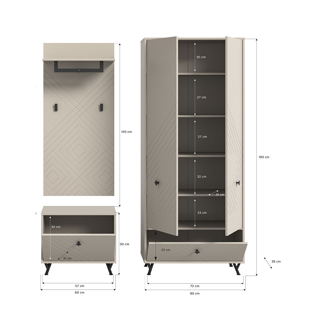 ebuy24 Notes garderobe opstelling mat beige.