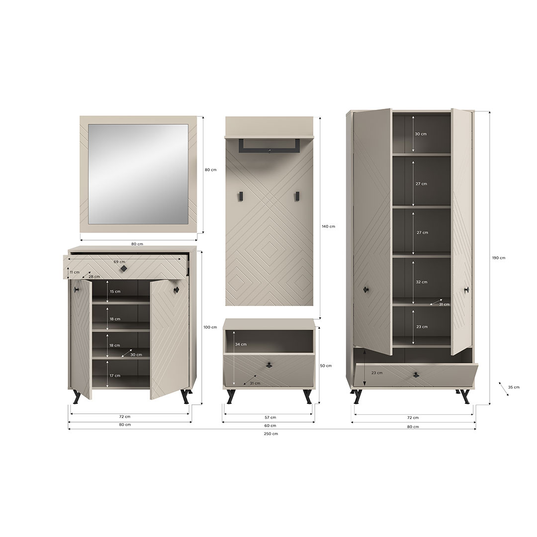 ebuy24 Notes garderobe opstelling mat beige.