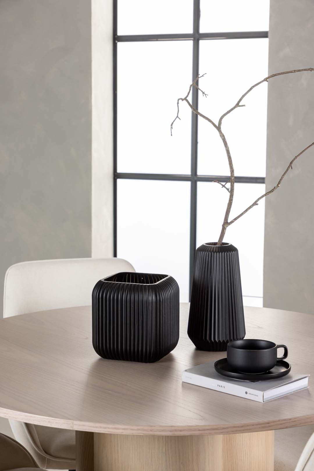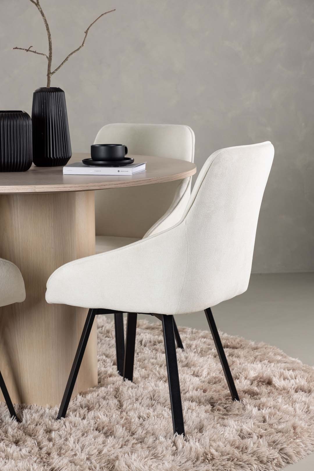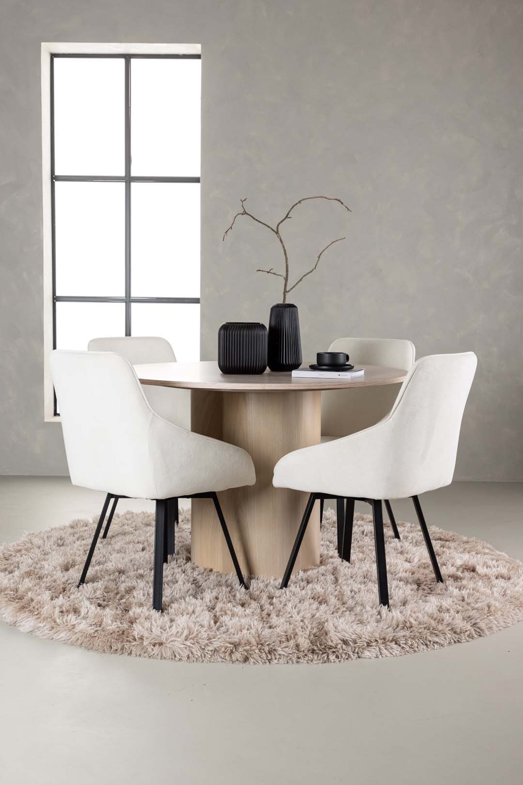 ebuy24 Olivia eethoek tafel whitewash en 4 Rosie stoelen beige.