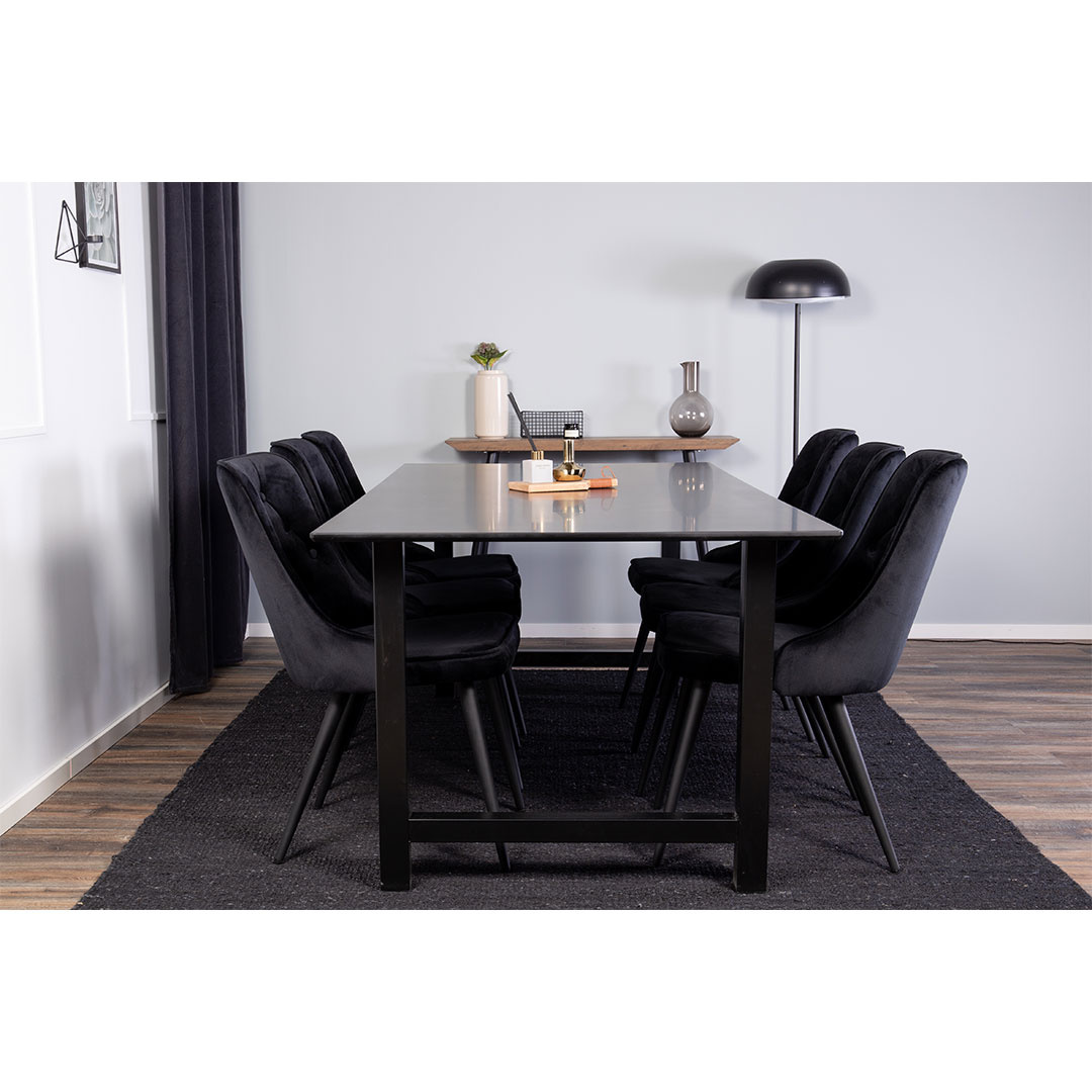 Ervaar tijdloze elegantie met de Oslo eettafel. Met zijn indrukwekkende afmetingen van 220 cm x 100 cm biedt deze tafel royale ruimte voor al uw maaltijden en sociale bijeenkomsten. Het robuuste ontwerp zorgt ervoor dat de tafel niet alleen stijlvol maar ook duurzaam is. De tafel is gedecoreerd in elegant zwart en straalt een klassieke charme uit die perfect past in elke moderne woning. De stevige, rechte poten bieden stevige steun, zorgen voor stabiliteit en maken het gemakkelijk om bijpassende stoelen te vinden. Geef uw eethoek een nieuw hoogtepunt met de Oslo eettafel, die functionaliteit en tijdloze stijl combineert.