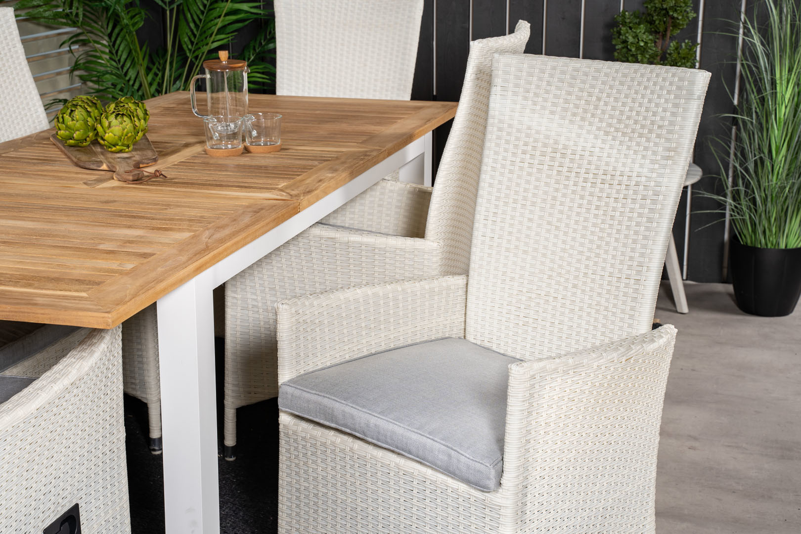 Padova tuinstoel met armleuningen incl. kussen, verstelbaar witgrijs.