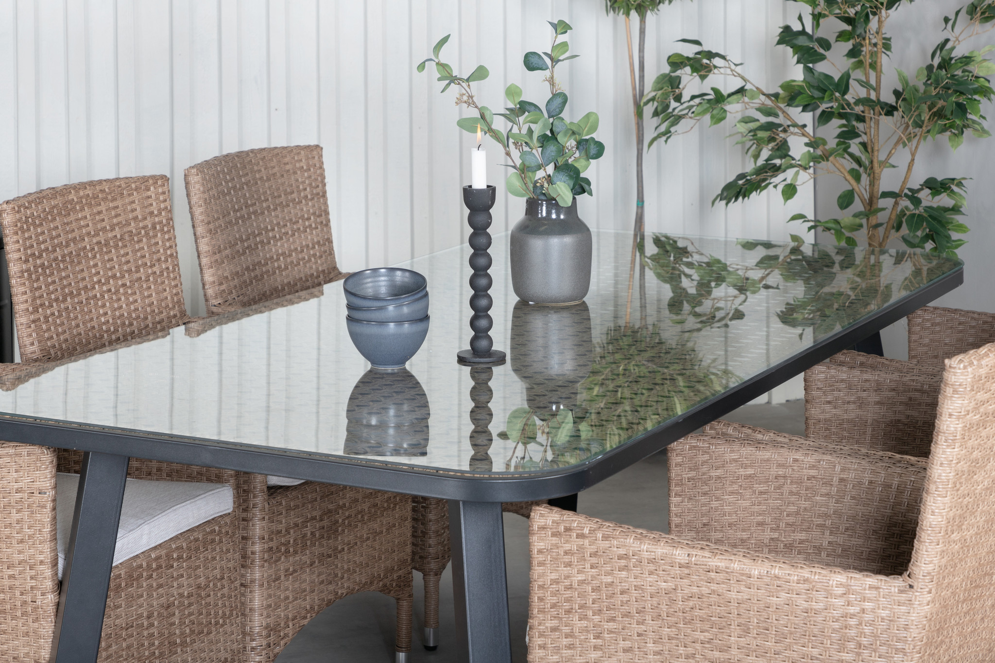 Paola eettafel tuin zwart.Afstand tussen tafelpoten - Lange zijde: 187 cm. Afstand tussen tafelpoten - korte zijde: 86 cm.